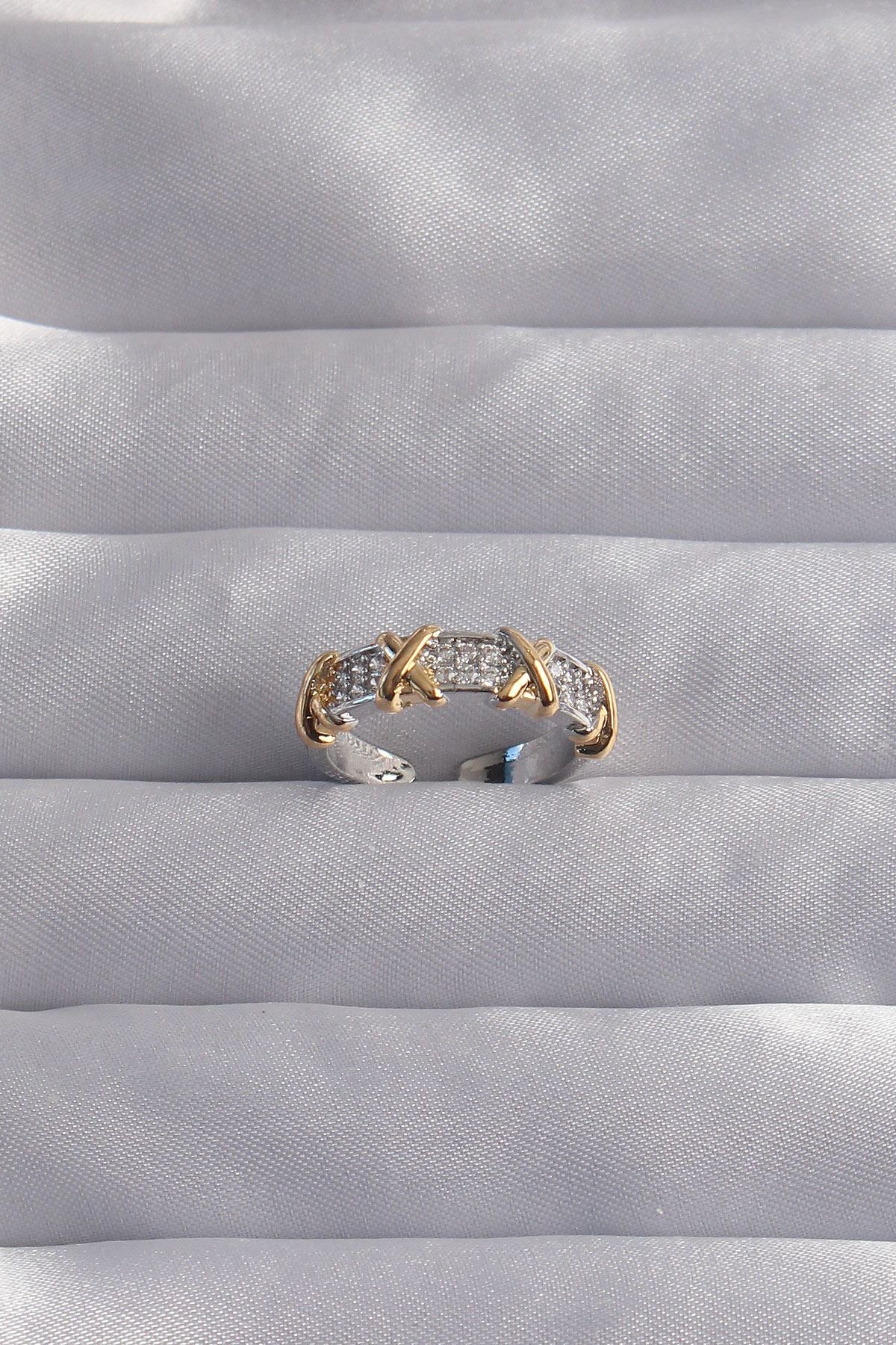 YRTCL Pirinç Ayarlamalı Gümüş Renk Zirkon Taşlı XOXO Model Yüzük