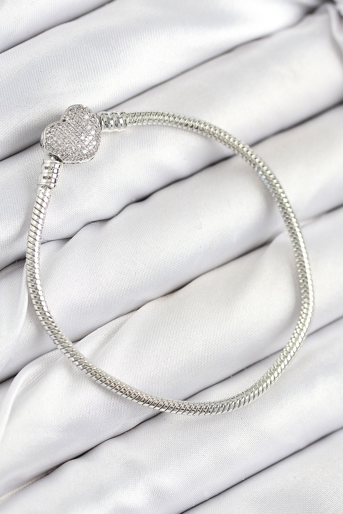 YRTCL Pirinç Charm Zirkon Taşlı Kalp Model Gümüş Renk Kadın Bileklik