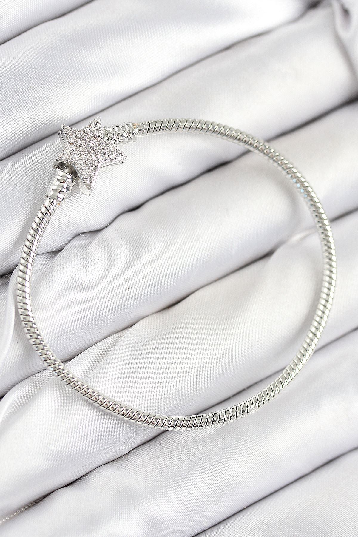 YRTCL Pirinç Charm Zirkon Taşlı Yıldız Model Gümüş Renk Kadın Bileklik