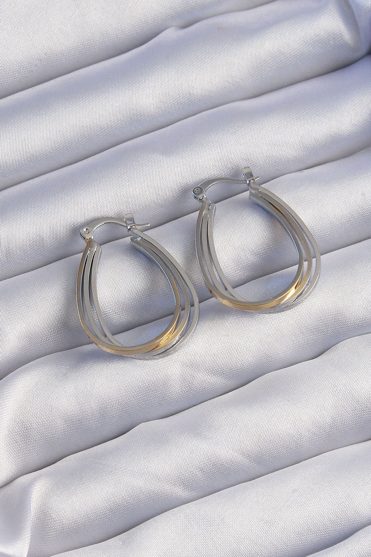 YRTCL Pirinç Gold Gümüş Renkli Oval Çoklu Görünümlü Küpe