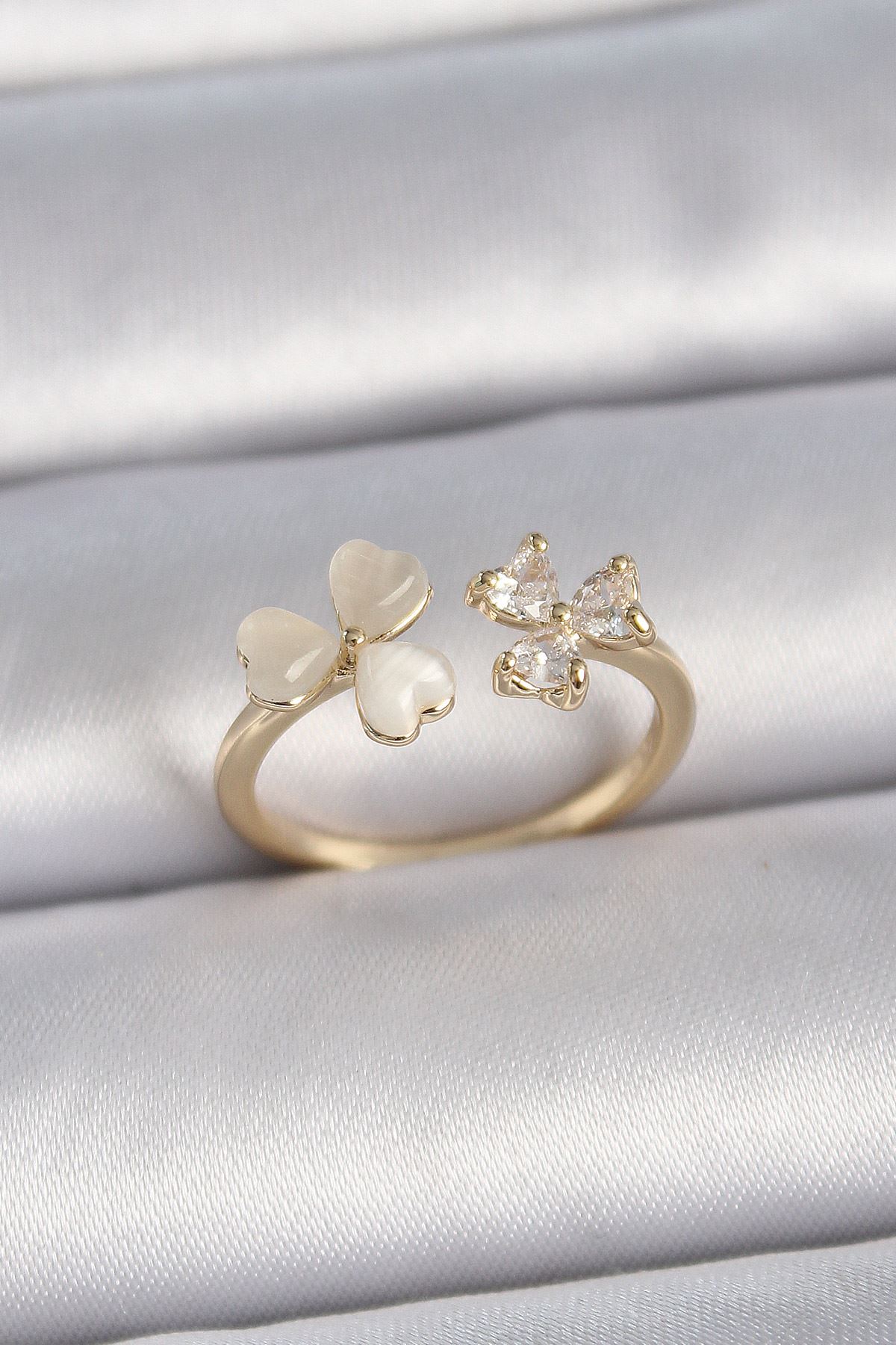 YRTCL Pirinç Gold Renk Zirkon Taşlı Çiçek Model Kalp Detay Kadın Yüzük