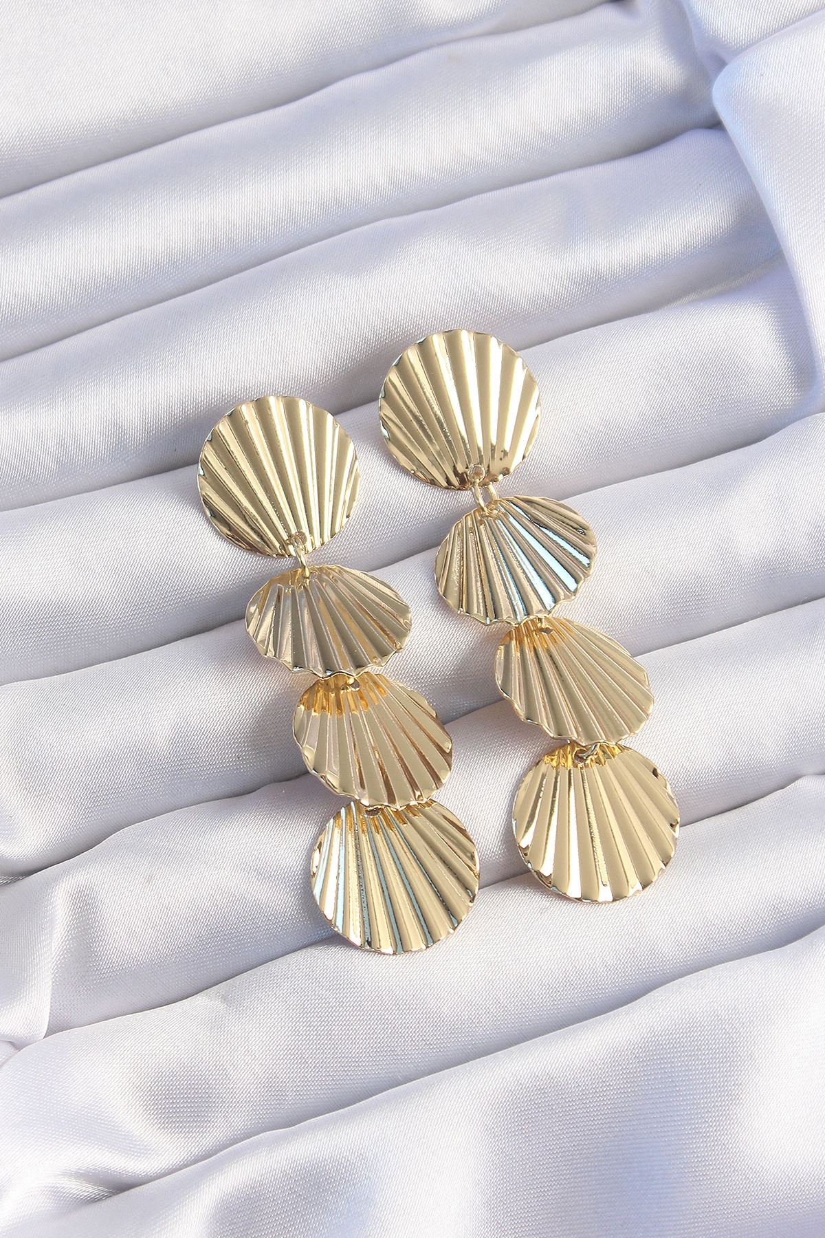 YRTCL Pirinç Gold Renk Deniz Kabuğu Model Sallantılı Küpe