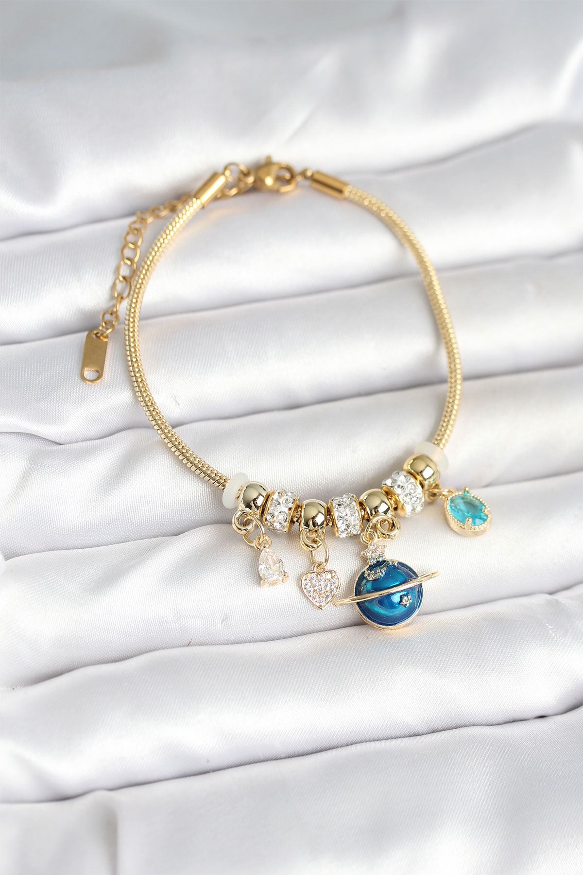 YRTCL Pirinç Gold Renk Dünya Charmlı Kadın Bileklik