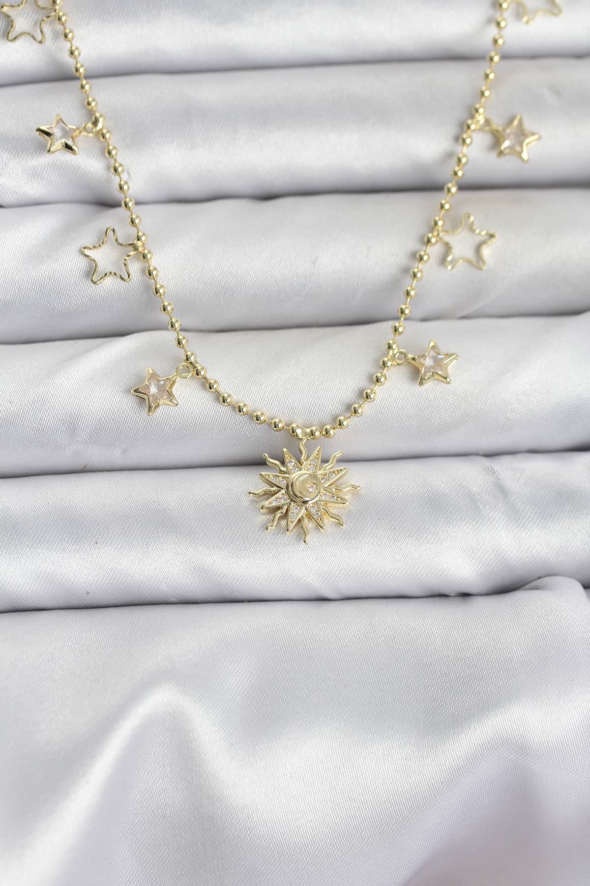 YRTCL Pirinç Gold Renk Güneş Model Kadın Kolye