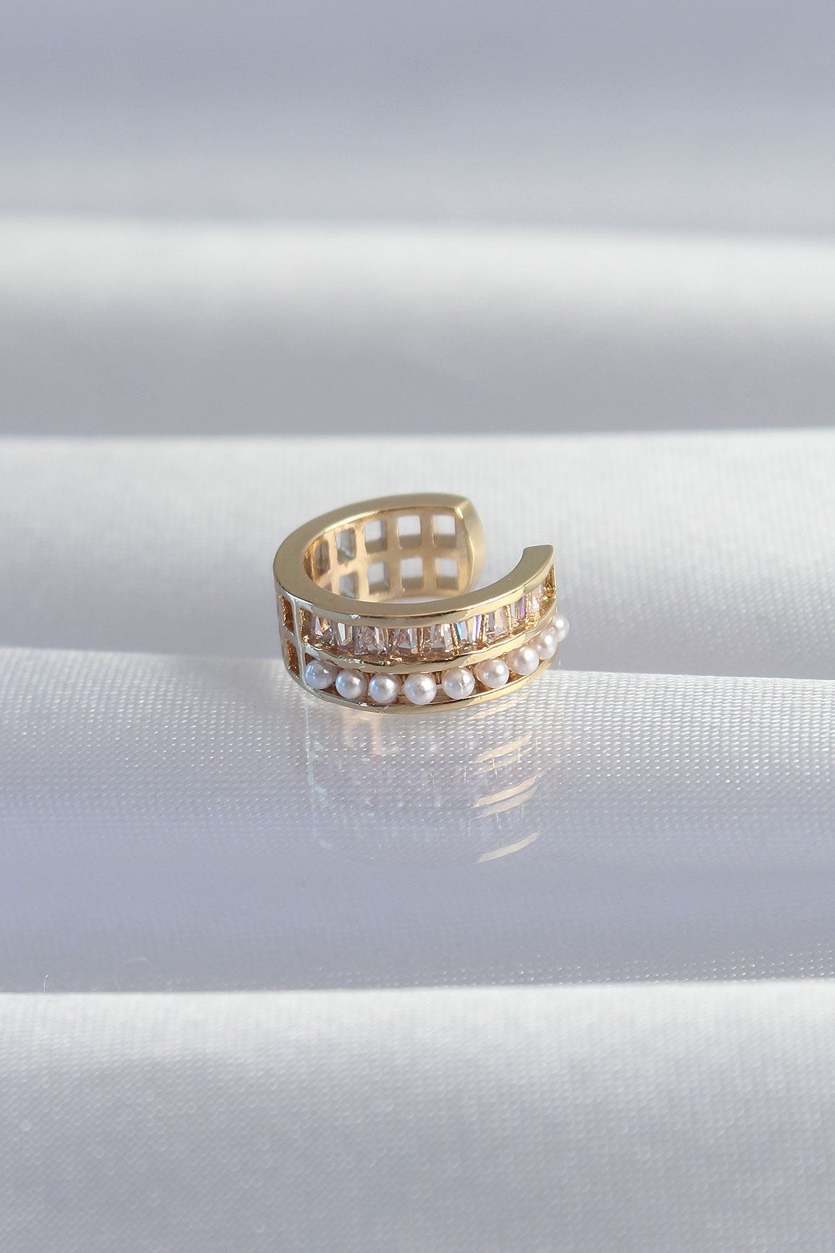 YRTCL Pirinç Gold Renk İncili Baget Taşlı Earcuff Küpe