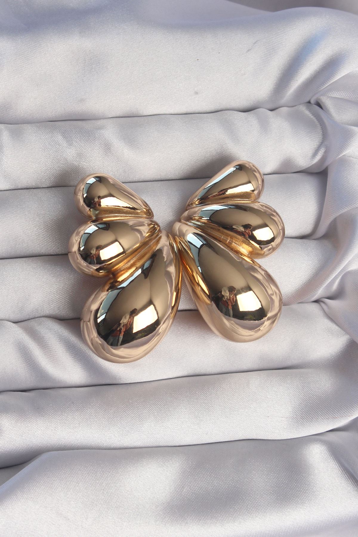 YRTCL Pirinç Gold Renk İri Bombeli Kelebek Küpe