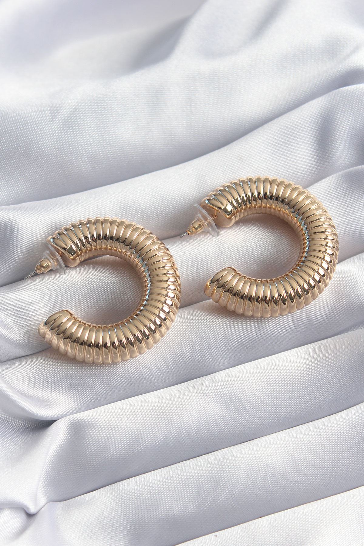 YRTCL Pirinç Gold Renk İşleme Detay Halka Model Kadın Küpe