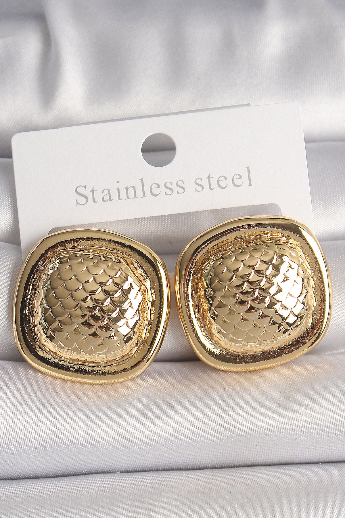 YRTCL Pirinç Gold Renk İşlemeli Kare Model Kadın Küpe