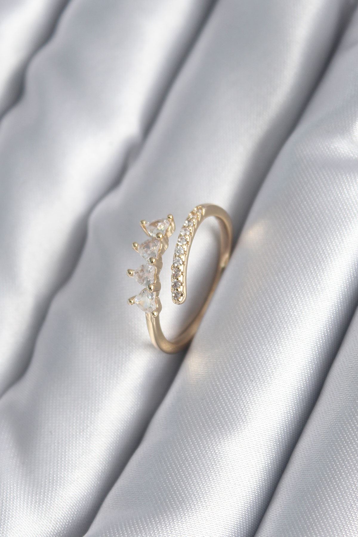 YRTCL Pirinç Gold Renk Ayarlanabilir Zirkon Taşlı Kalp Beyaz Mineli Model Kadın Yüzük