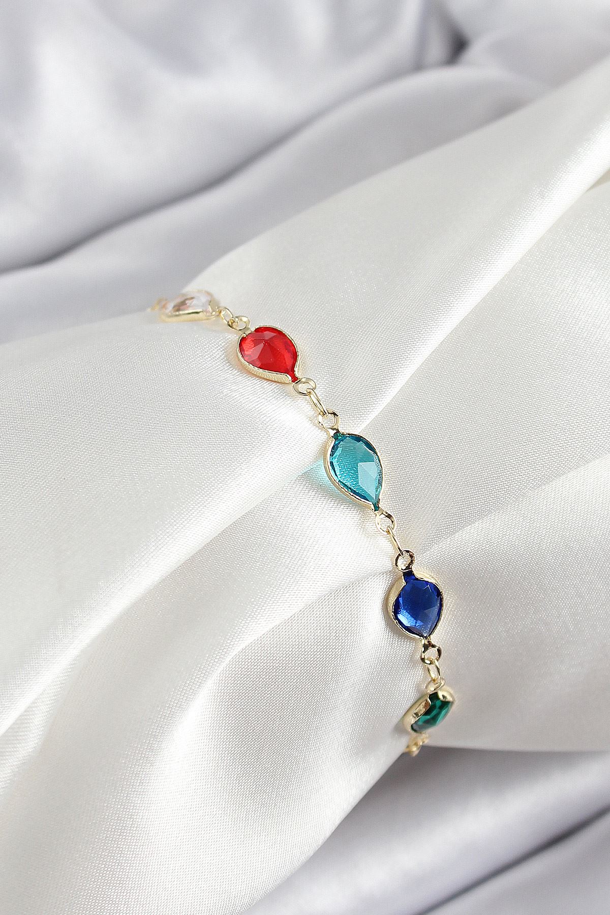 YRTCL Pirinç Gold Renk Karışık Renk Damla Zirkon Taşlı Kadın Bileklik