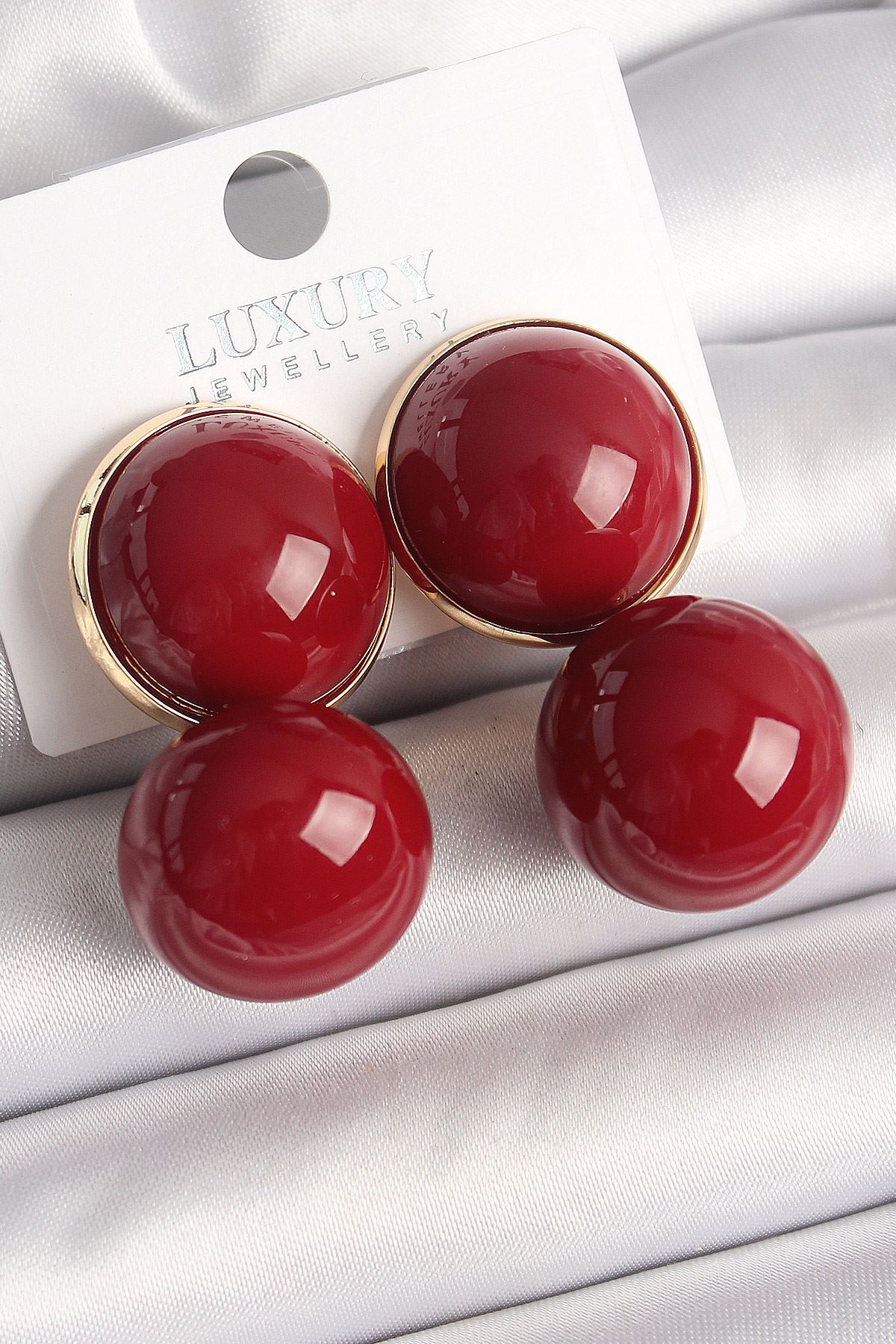 YRTCL Pirinç Gold Renk Kırmızı Boncuk Model Kadın Küpe