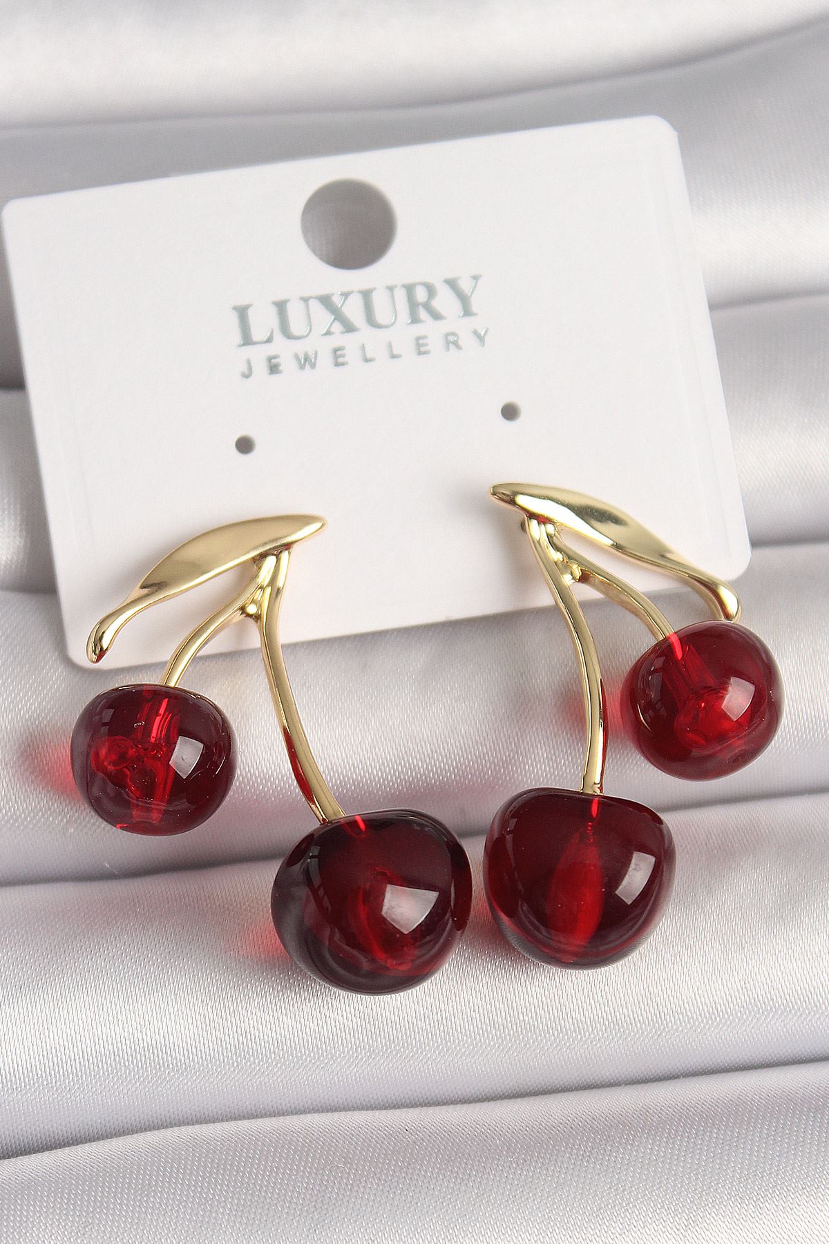 YRTCL Pirinç Gold Renk Kırmızı Kiraz Model Kadın Küpe