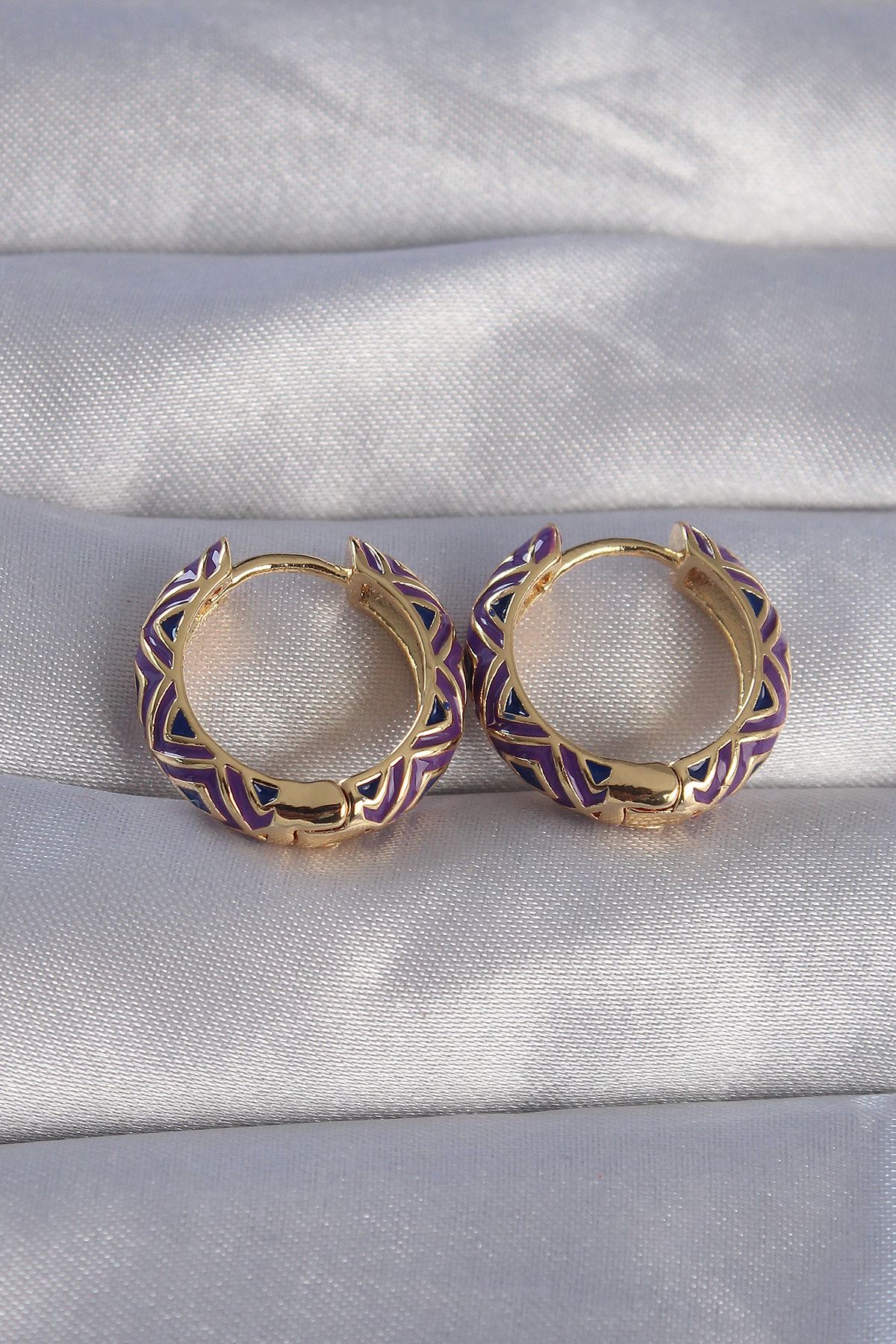 YRTCL Pirinç Gold Renk Mor Etnik Desenli Halka Küpe