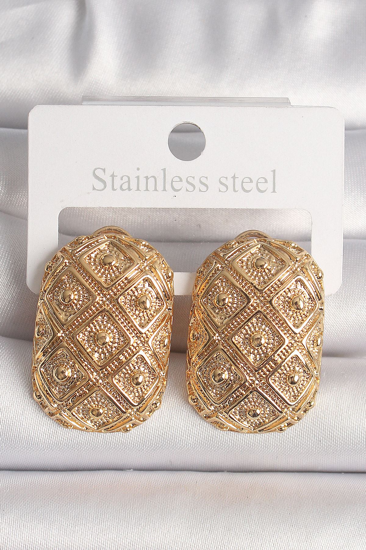 YRTCL Pirinç Gold Renk Motif İşlemeli Kadın Küpe
