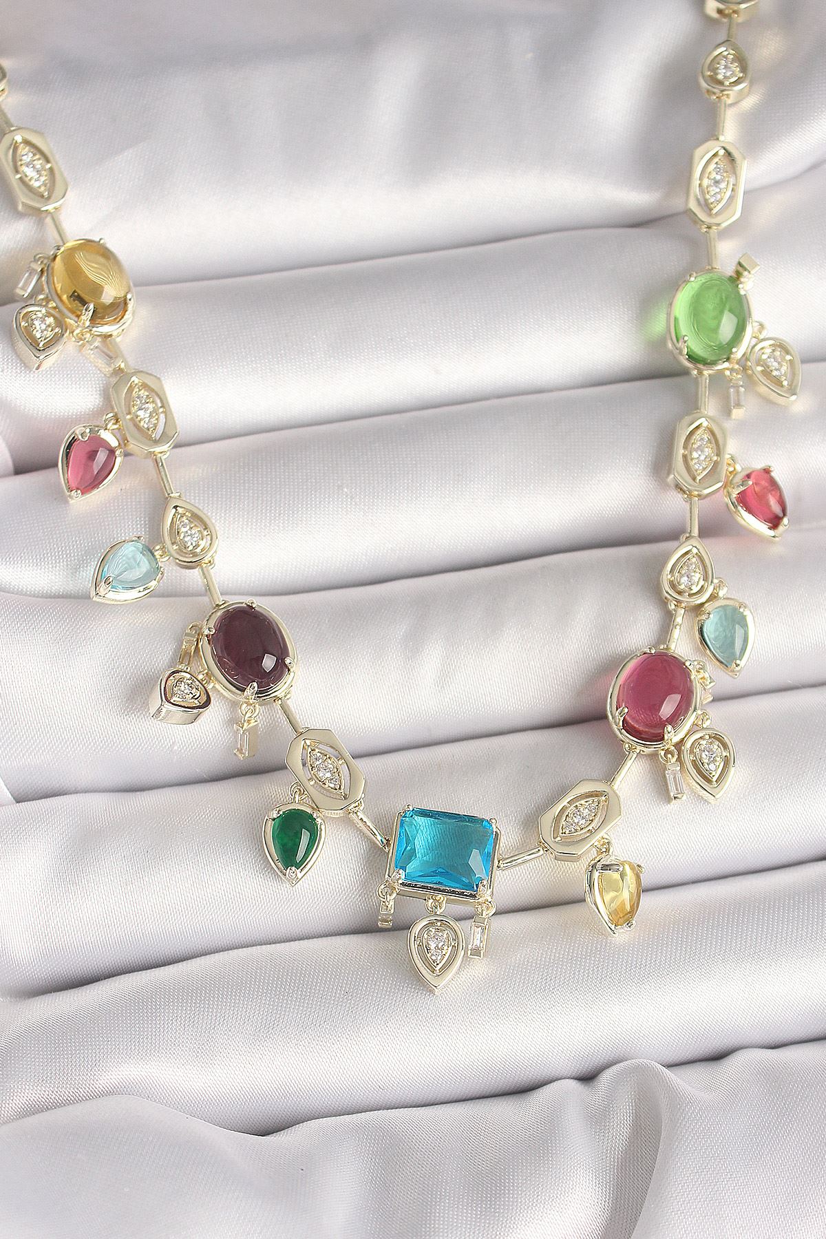 YRTCL Pirinç Gold Renk Renli Zirkon Taşlı VIP Seri Kadın Kolye