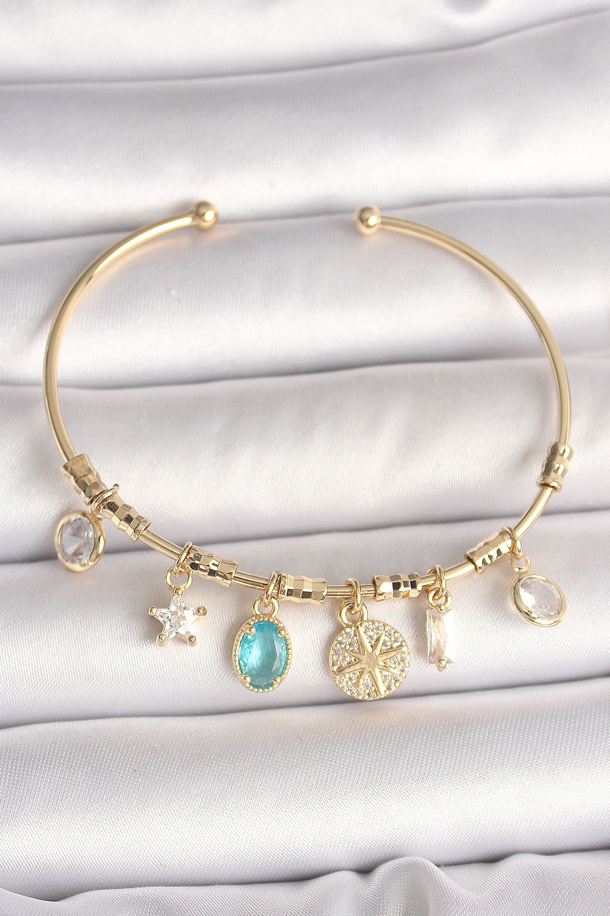 YRTCL Pirinç Gold Renk Sallantı Zirkon Taş Detaylı Pusula Figür Charm Kadın Bileklik