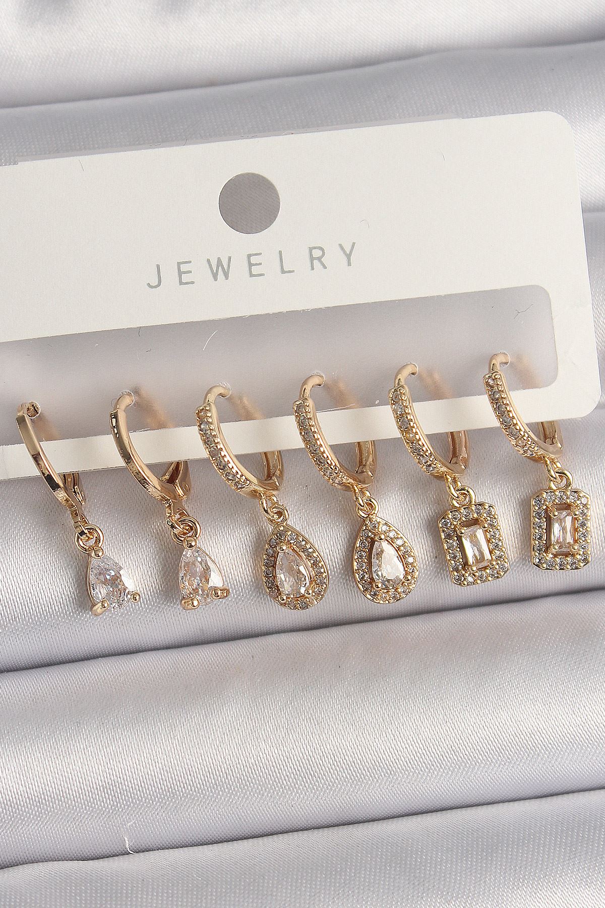 YRTCL Pirinç Gold Renk Sallantı Zirkon Taşı Damla Model Kadın Küpe Seti