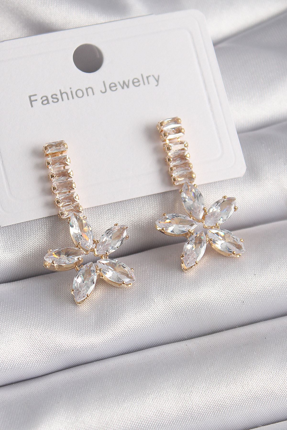 YRTCL Pirinç Gold Renk Su Yolu Zirkon Taşlı Çiçek Model Kadın Küpe