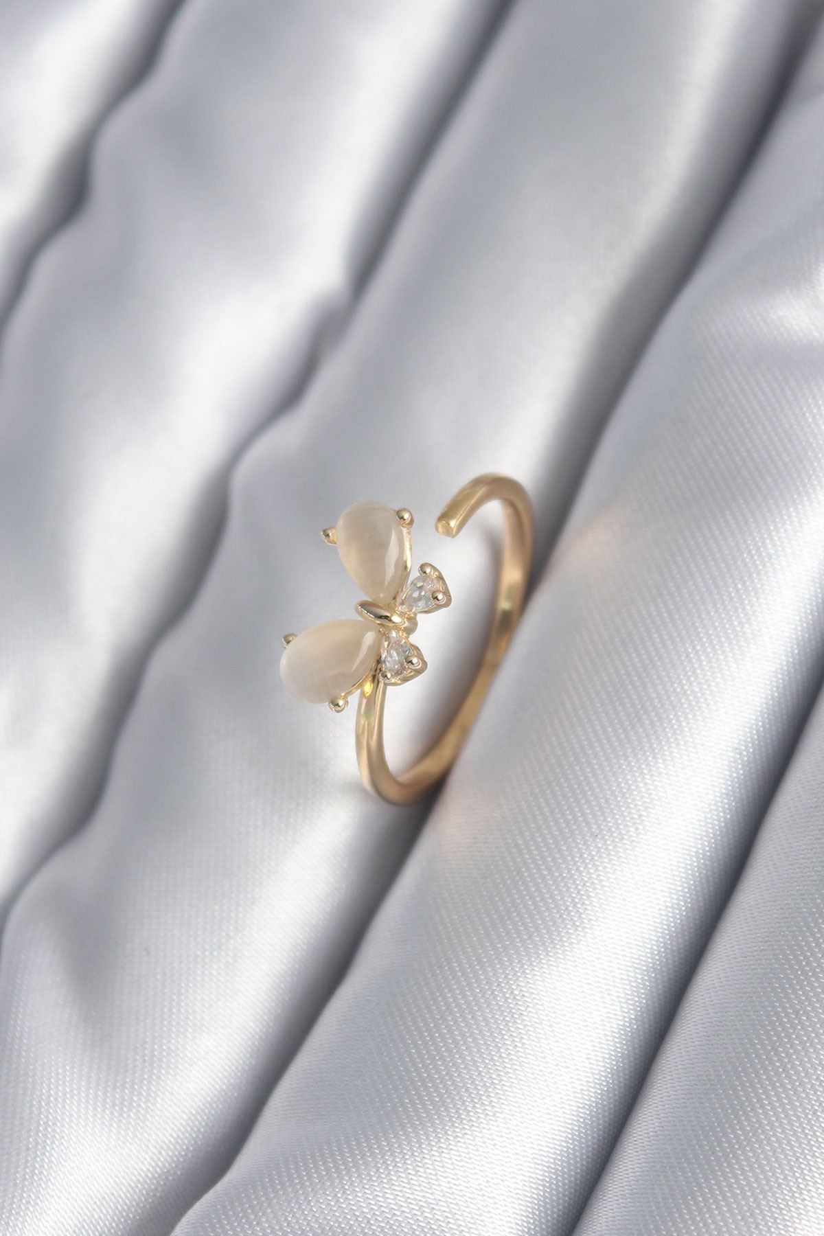 YRTCL Pirinç Gold Renk Zirkon Taş Detaylı Beyaz Mineli Kelebek Model Kadın Yüzük