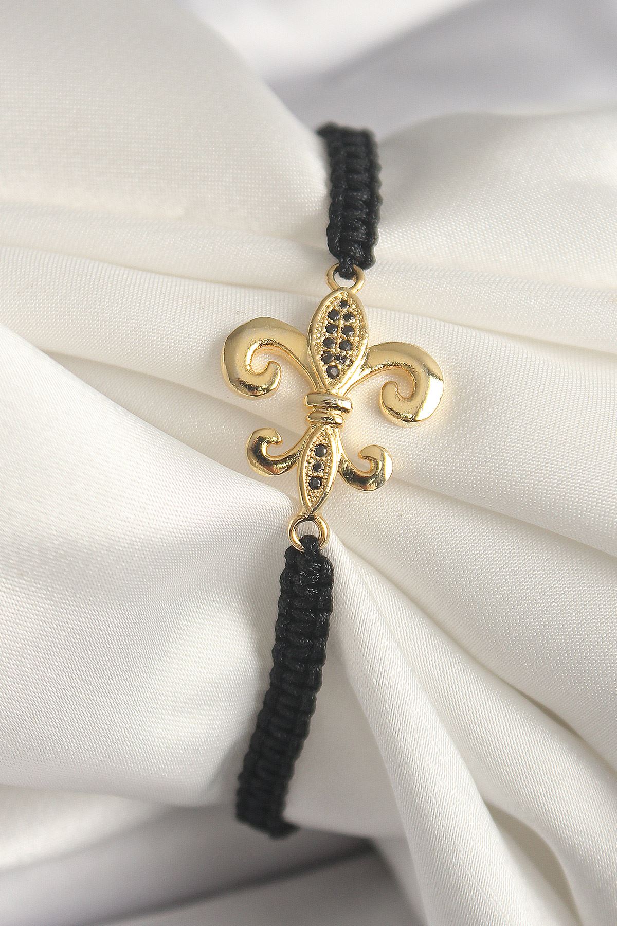 YRTCL Pirinç Gold Renk Zirkon Taş İşlemeli Zambak Figür Asansörlü Makrome Model Kadın Bileklik