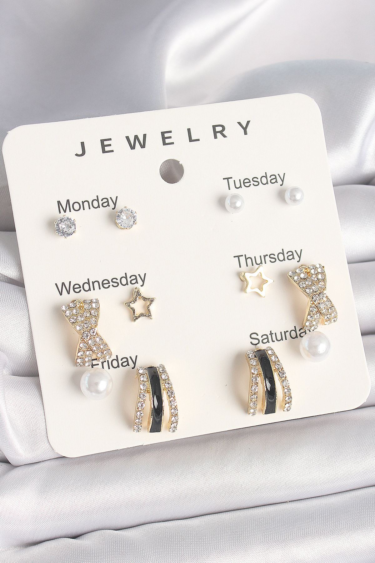 YRTCL Pirinç Gold Renk Zirkon Taş Yıldız Detaylı İncili 7'Li Set Kadın Küpe Seti