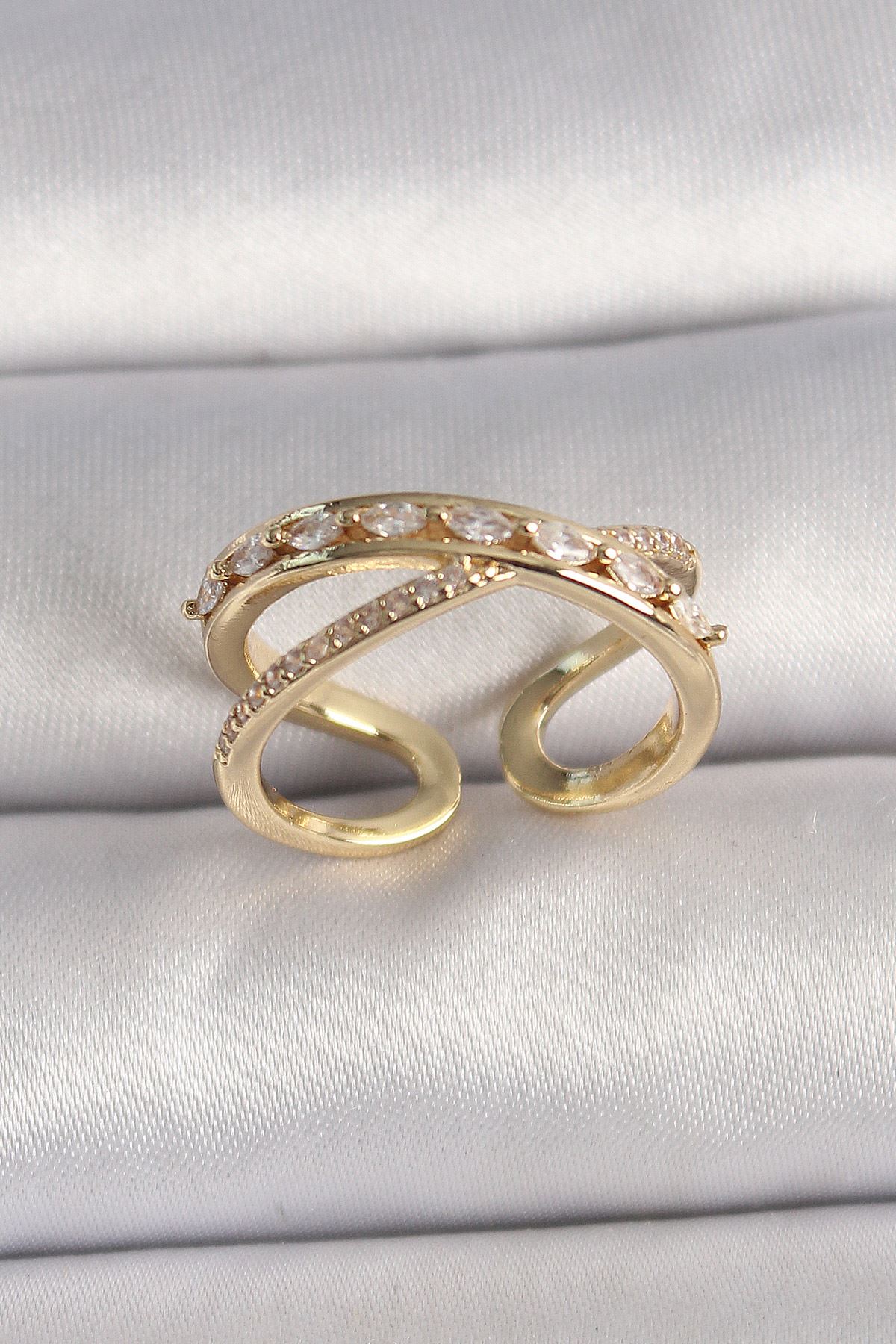 YRTCL Pirinç Gold Renk Zirkon Taşlı Ayarlanabilir Kadın Yüzük