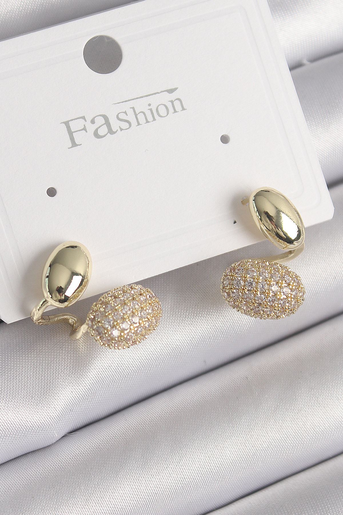 YRTCL Pirinç Gold Renk Zirkon Taşlı Bombeli Model Kadın Küpe