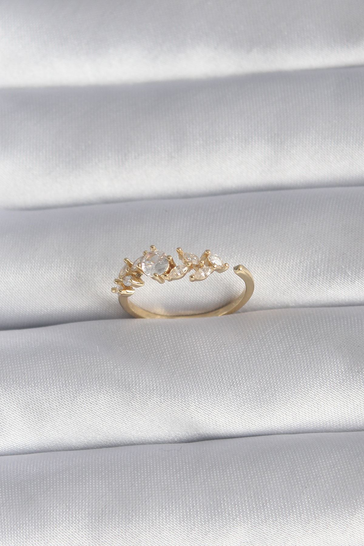 YRTCL Pirinç Gold Renk Zirkon Taşlı Ayarlanabilir Kadın Yüzük