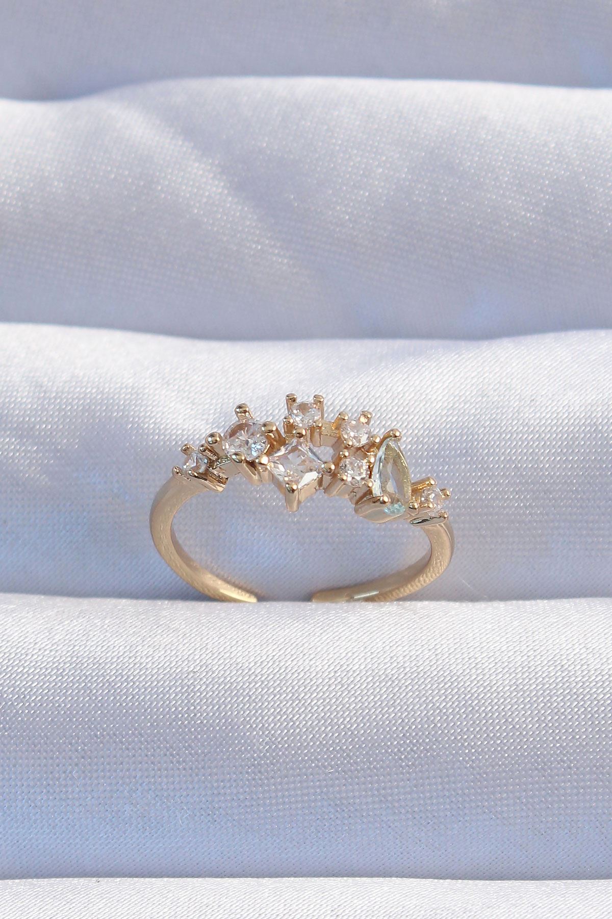 YRTCL Pirinç Gold Renk Zirkon Taşlı Damla Detay Ayarlanabilir Yüzük
