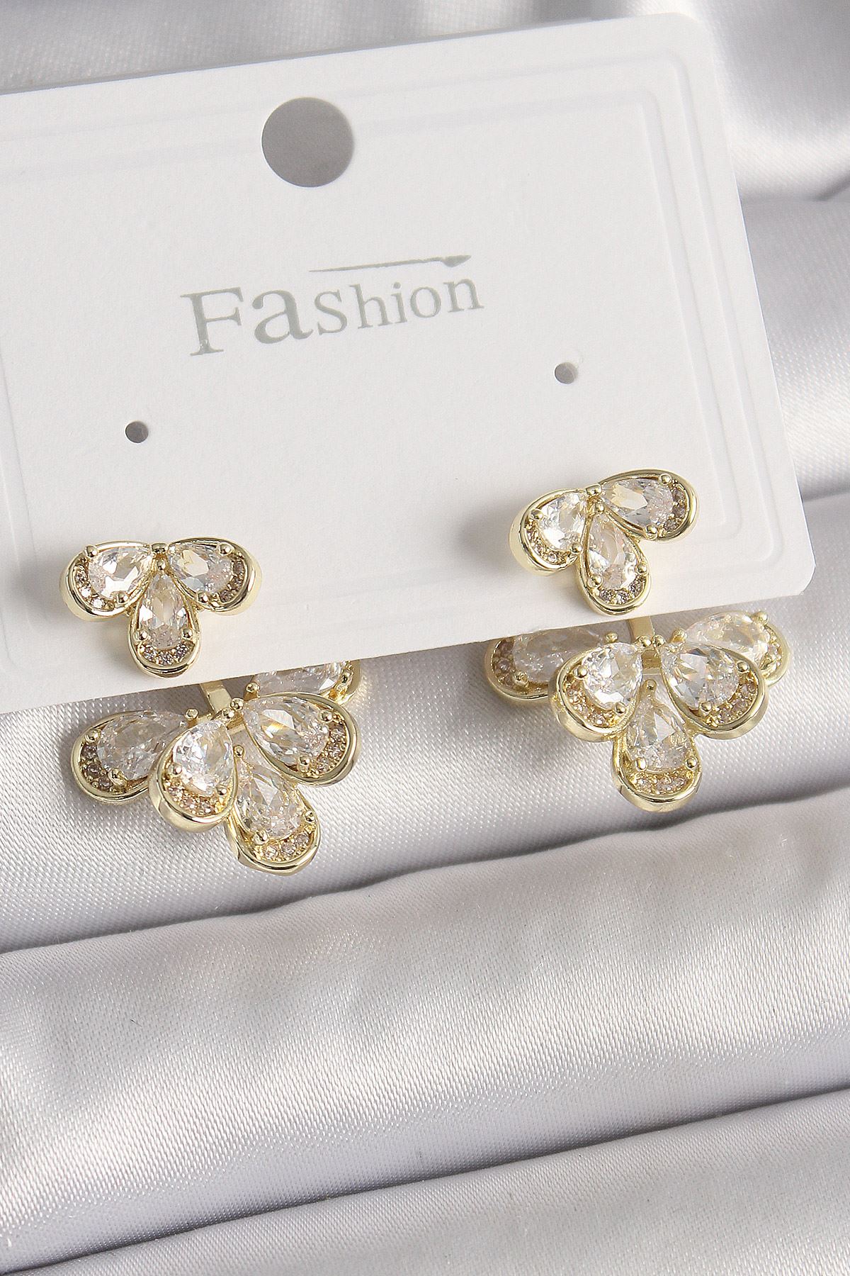 YRTCL Pirinç Gold Renk Zirkon Taşlı Damla Model Kadın Küpe
