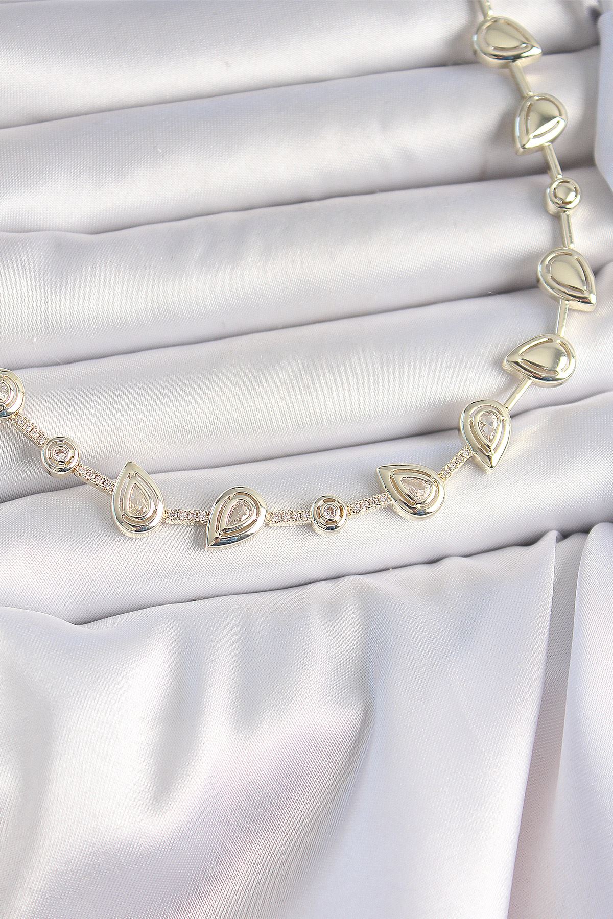 YRTCL Pirinç Gold Renk Zirkon Taşlı Damla Model VIP Seri Exclusive Kadın Kolye
