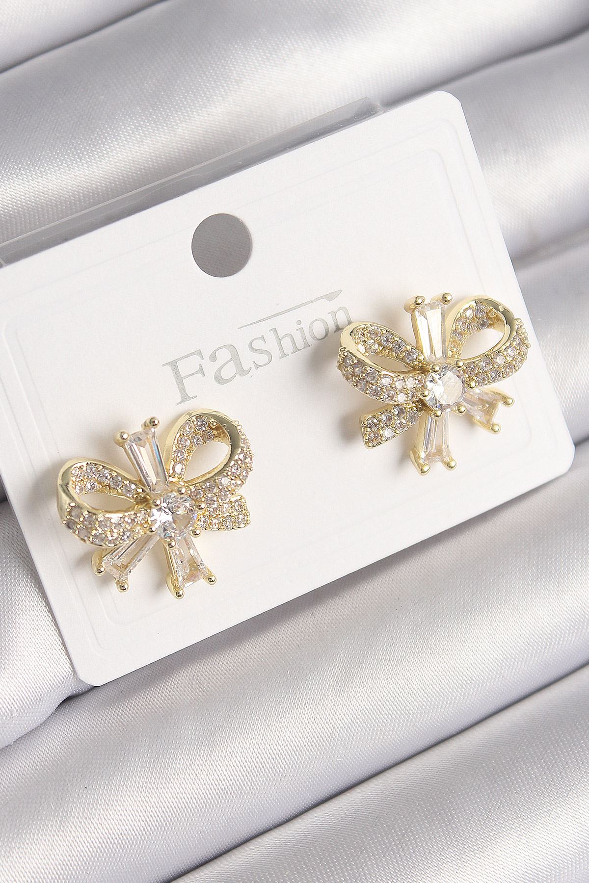 YRTCL Pirinç Gold Renk Zirkon Taşlı Fiyonk Model Kadın Küpe