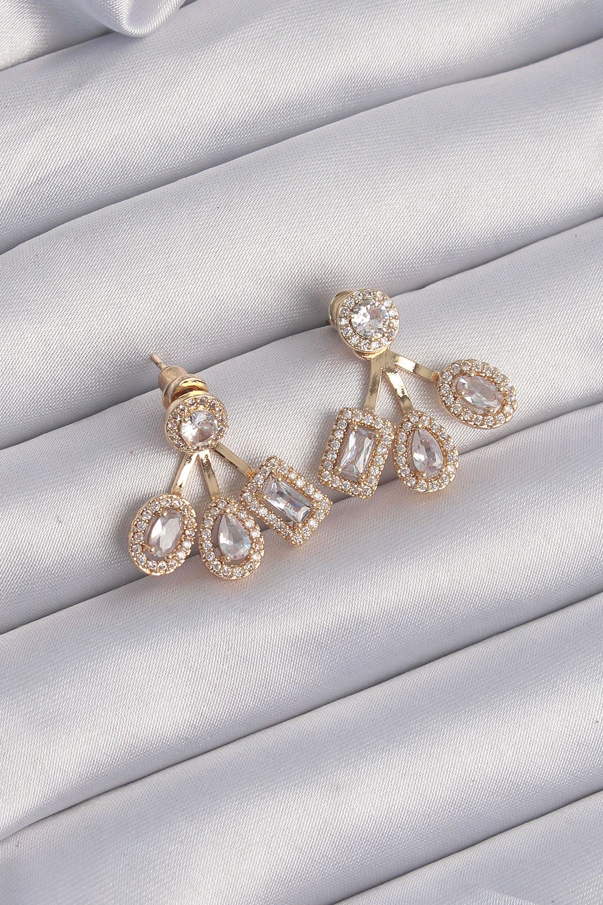 YRTCL Pirinç Gold Renk Zirkon Taşlı Geometrik Model Küpe