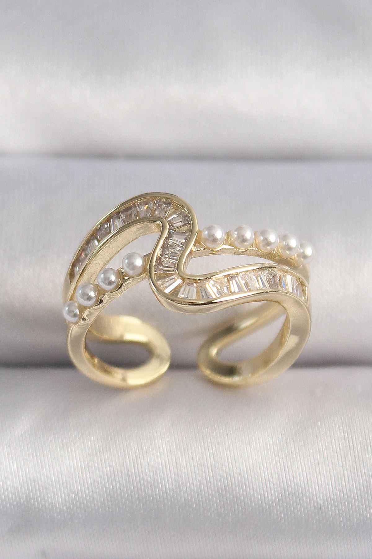 YRTCL Pirinç Gold Renk Zirkon Taşlı İnci Detay VIP Seri Kadın Yüzük