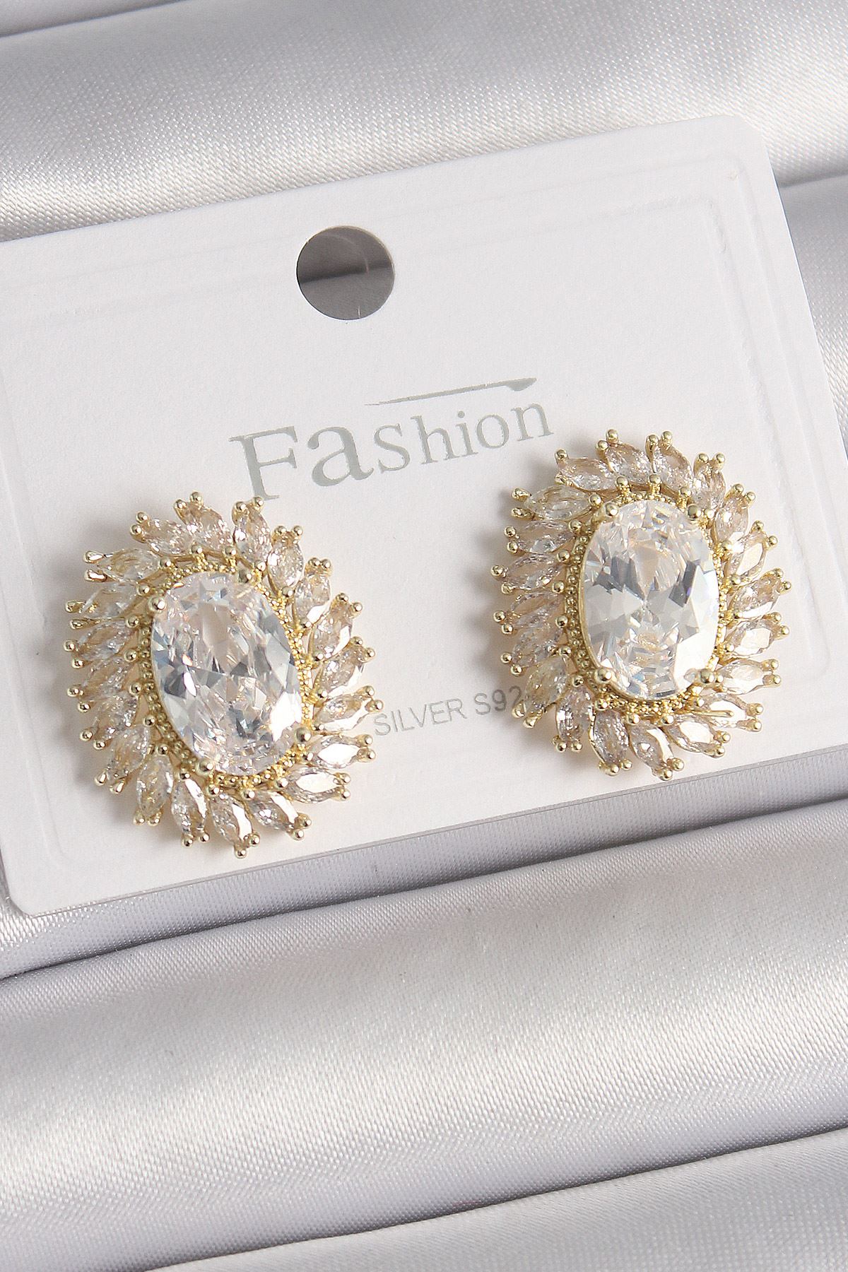 YRTCL Pirinç Gold Renk Zirkon Taşlı Kadın Küpe