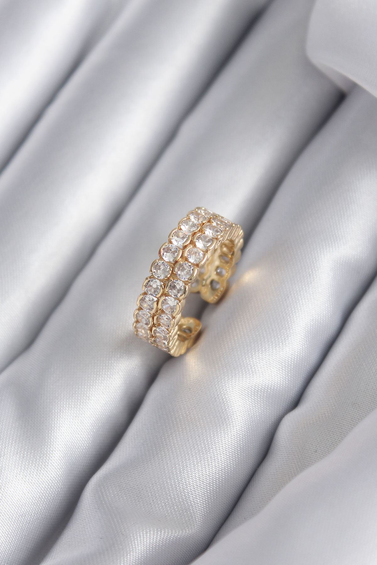 YRTCL Pirinç Gold Renk Su Yolu Zirkon Taşlı Dalga Model Ayarlanabilir Kadın Yüzük