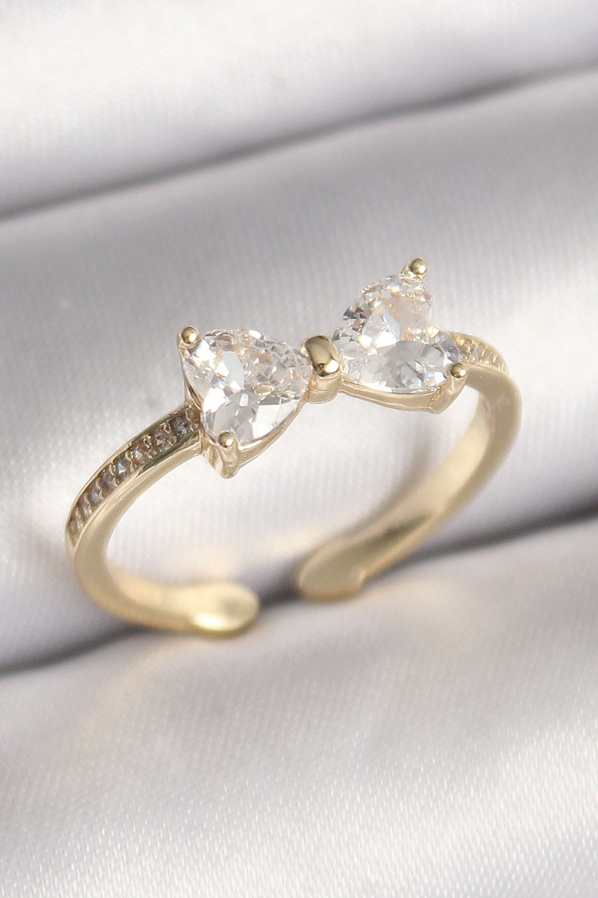 YRTCL Pirinç Gold Renk Zirkon Taşlı Kalp Fiyonk Model Kadın Yüzük