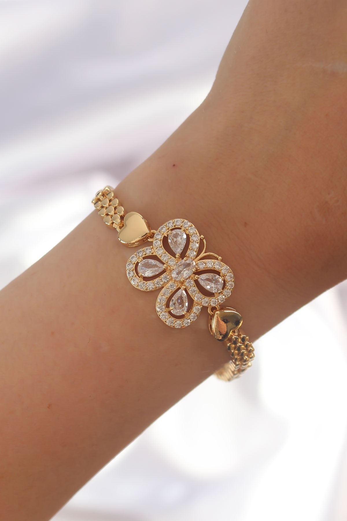 YRTCL Pirinç Gold Renk Zirkon Taşlı Kelebek Figürlü Parçalı Model Bileklik
