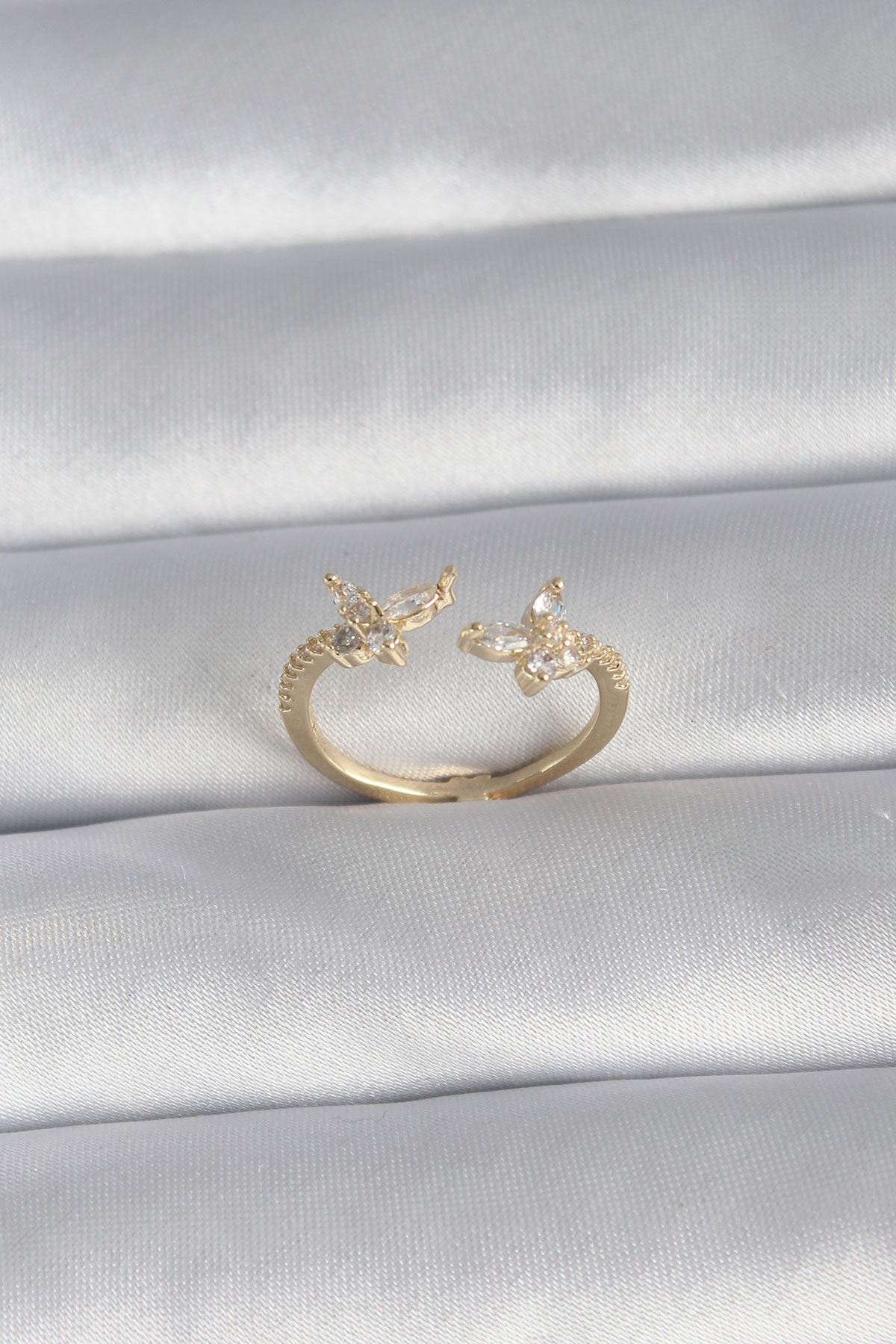 YRTCL Pirinç Gold Renk Zirkon Taşlı Kelebek Model Kadın Yüzük