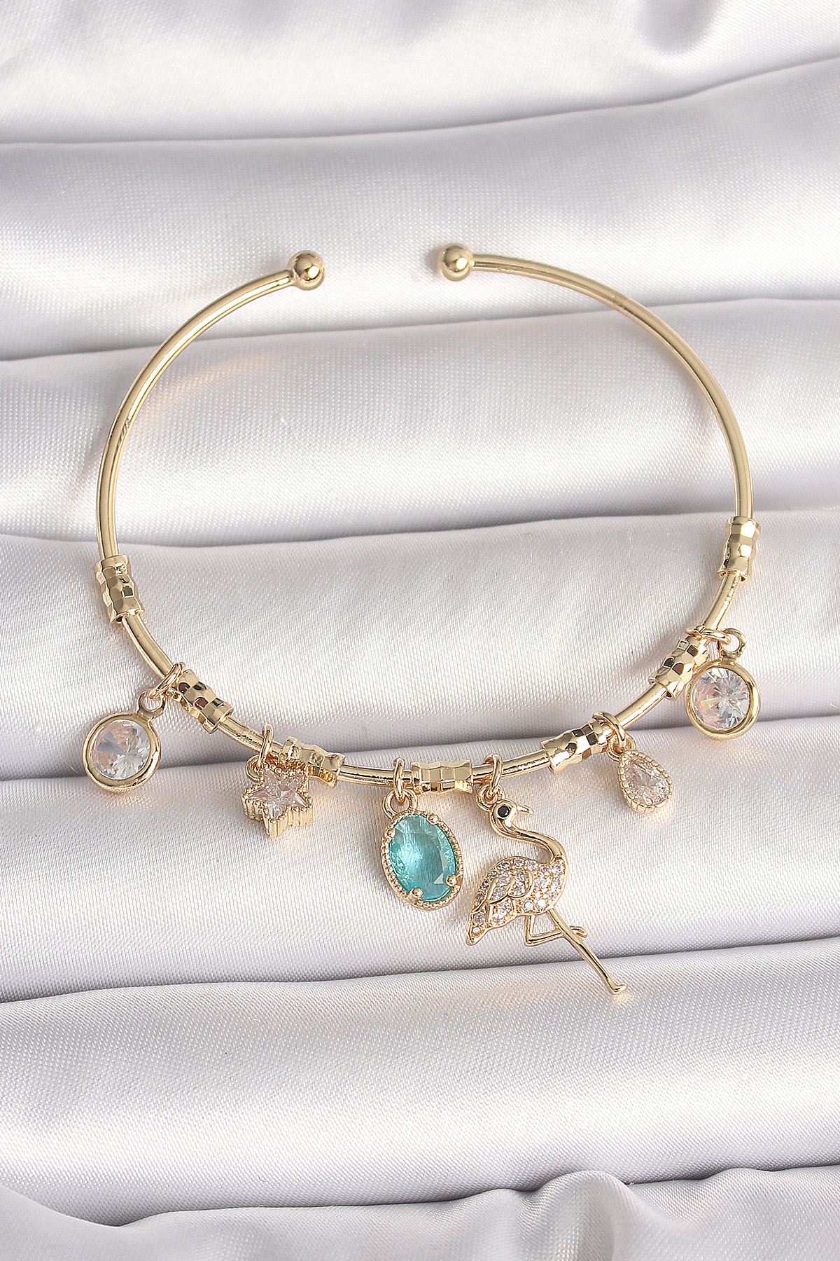 YRTCL Pirinç Gold Renk Zirkon Taşlı Sallantı Filamingo Figür Charm Kadın Bileklik