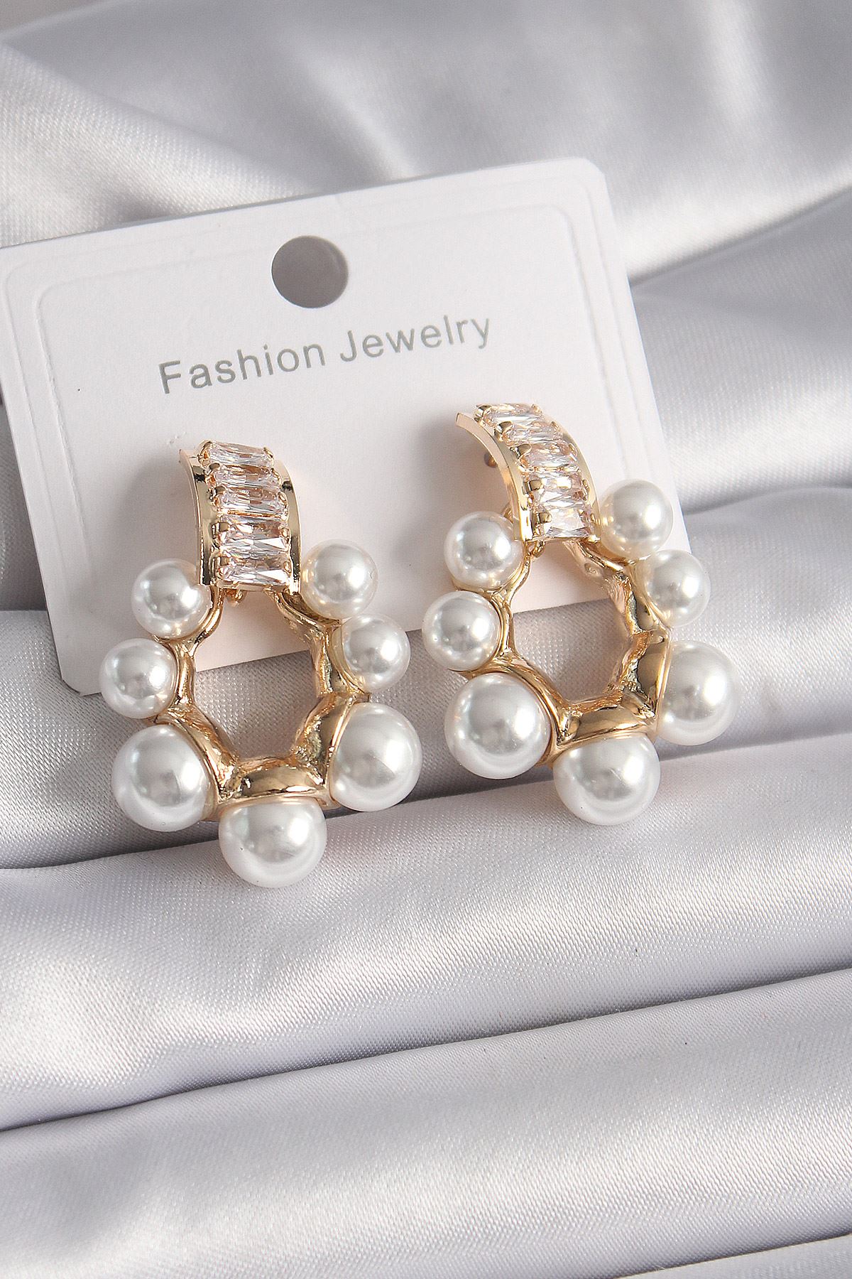 YRTCL Pirinç Gold Renk Zirkon Taşlı Su Yolu İncili Halka Model Kadın Küpe