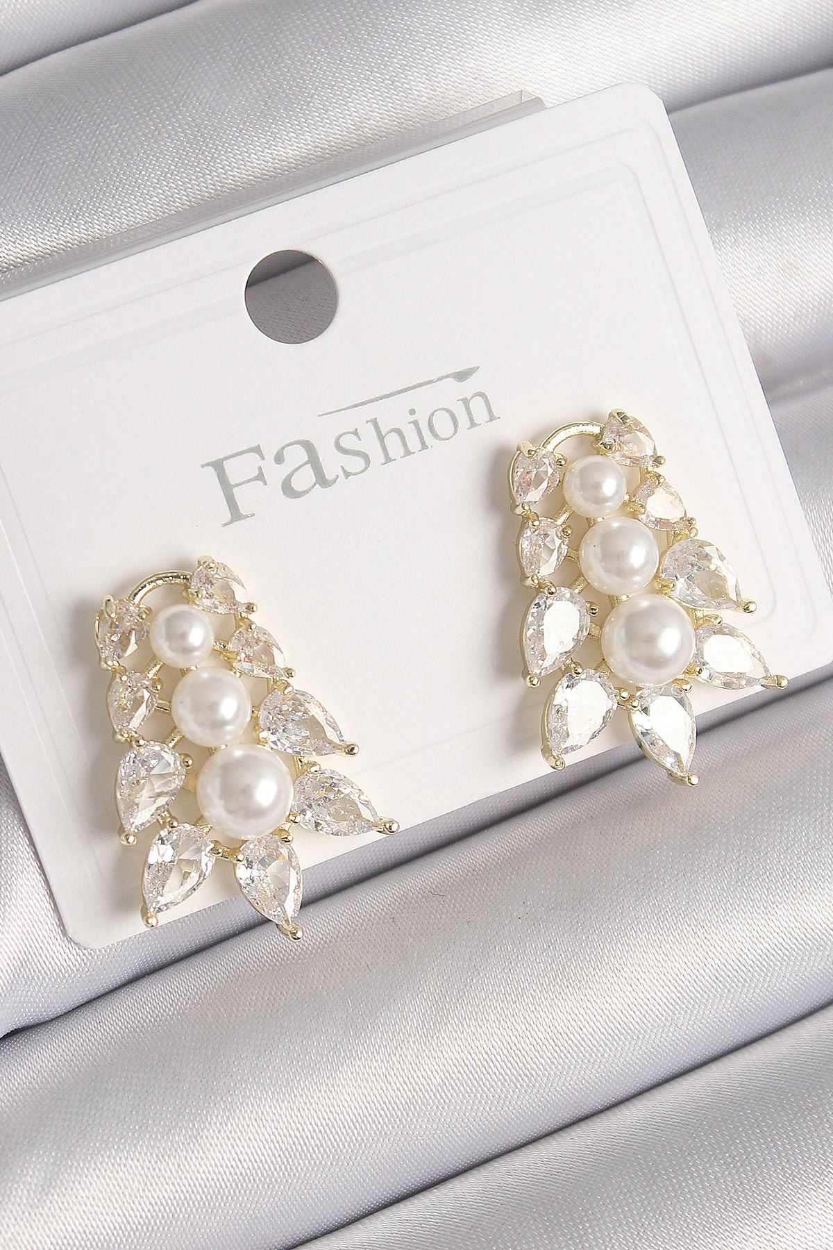 YRTCL Pirinç Gold Renk Zirkon Taşlı Yaprak Model İnci Detay Kadın Küpe