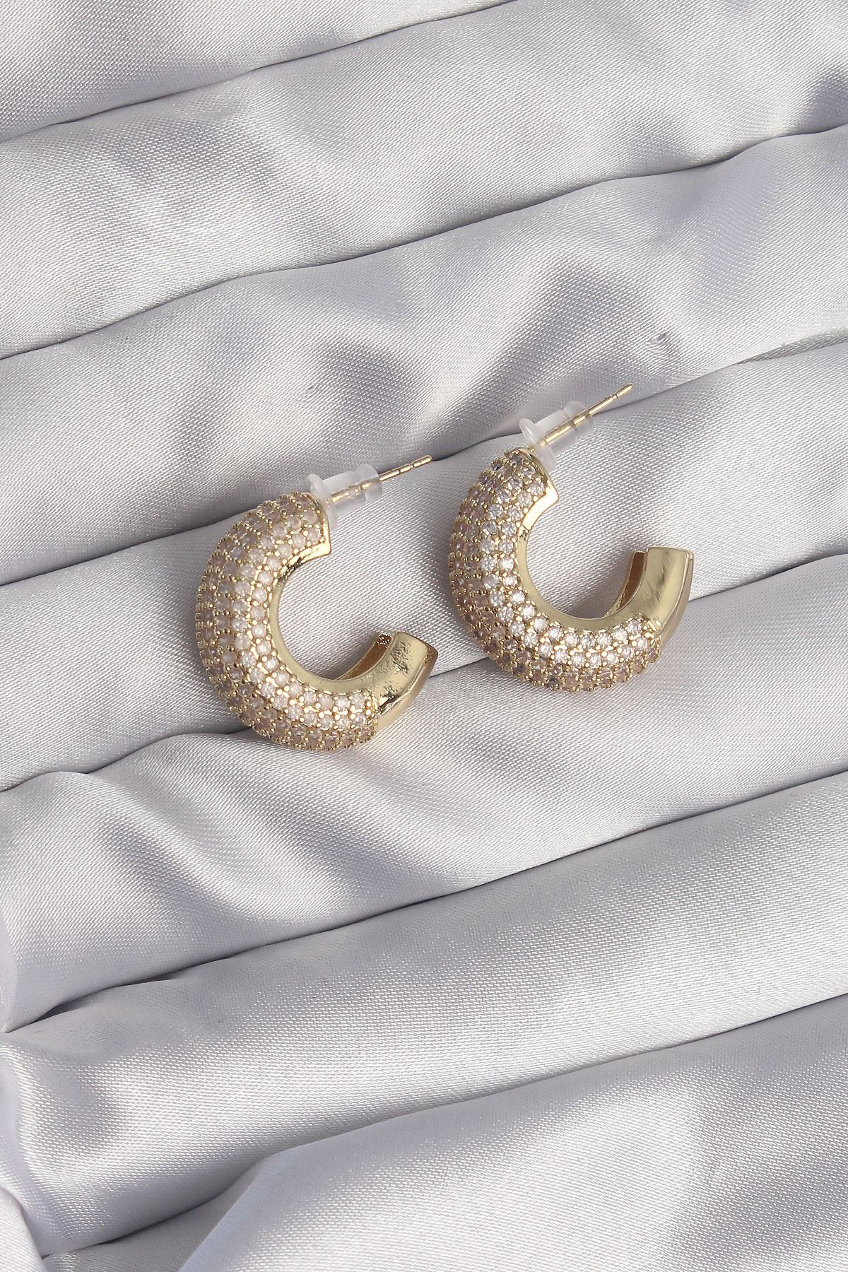 YRTCL Pirinç Gold Renk Zirkon Taşlı Yarım Halka Küpe