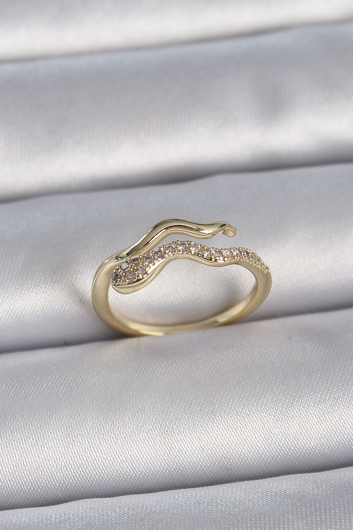 YRTCL Pirinç Gold Renk Zirkon Taşlı Yılan Ayarlanabilir Model Kadın Yüzük