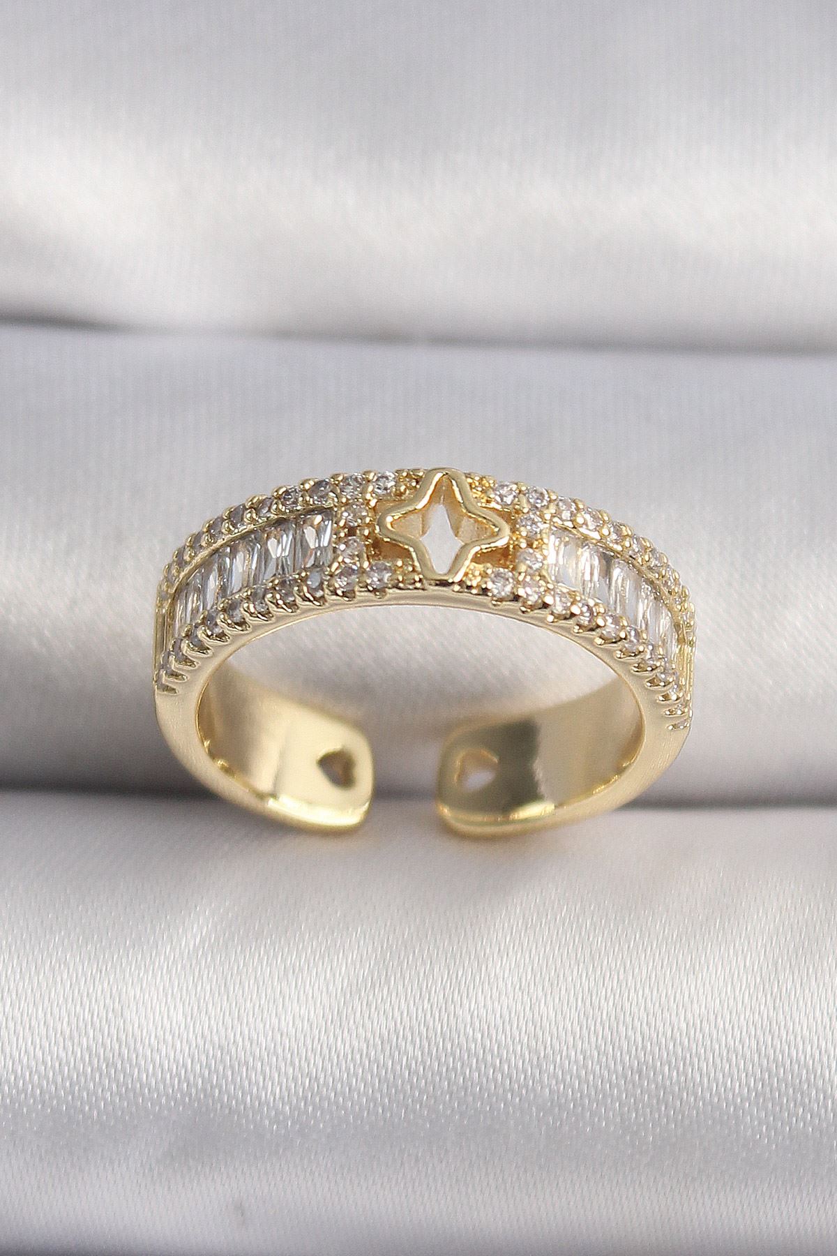 YRTCL Pirinç Gold Renk Zirkon Taşlı Yıldız İşleme VIP Seri Kadın Yüzük