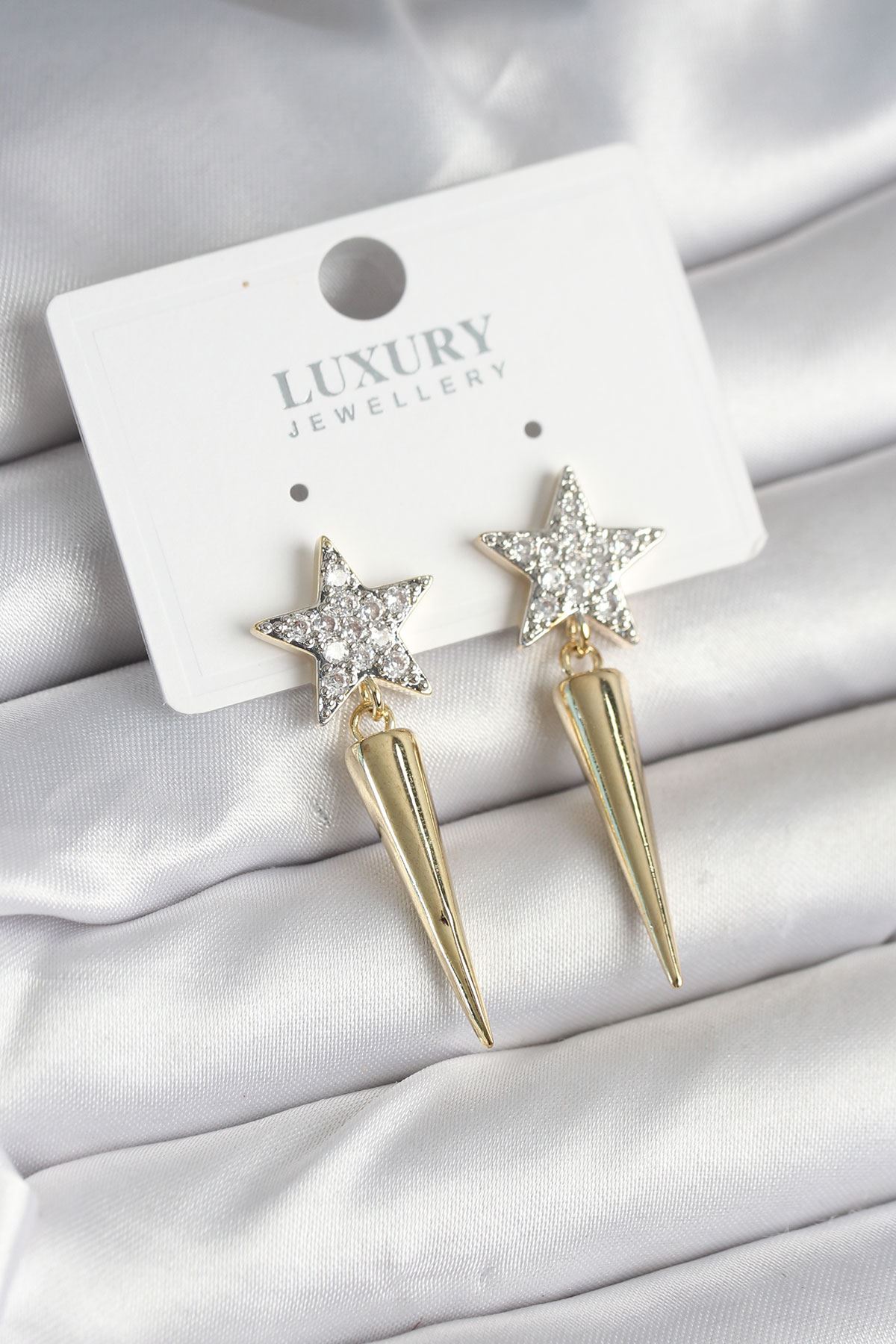 YRTCL Pirinç Gold Renk Zirkon Taşlı Yıldız Model Çivi Kadın Küpe