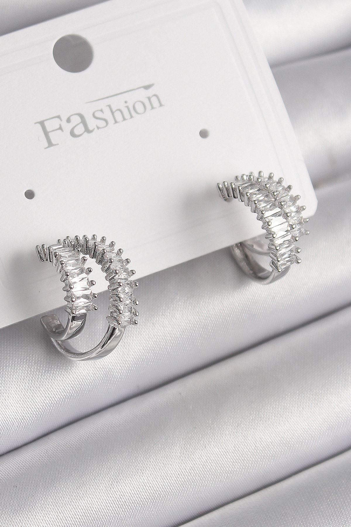 YRTCL Pirinç Gümüş Renk 2'Li Zirkon Taşlı Halka Model Kadın Küpe