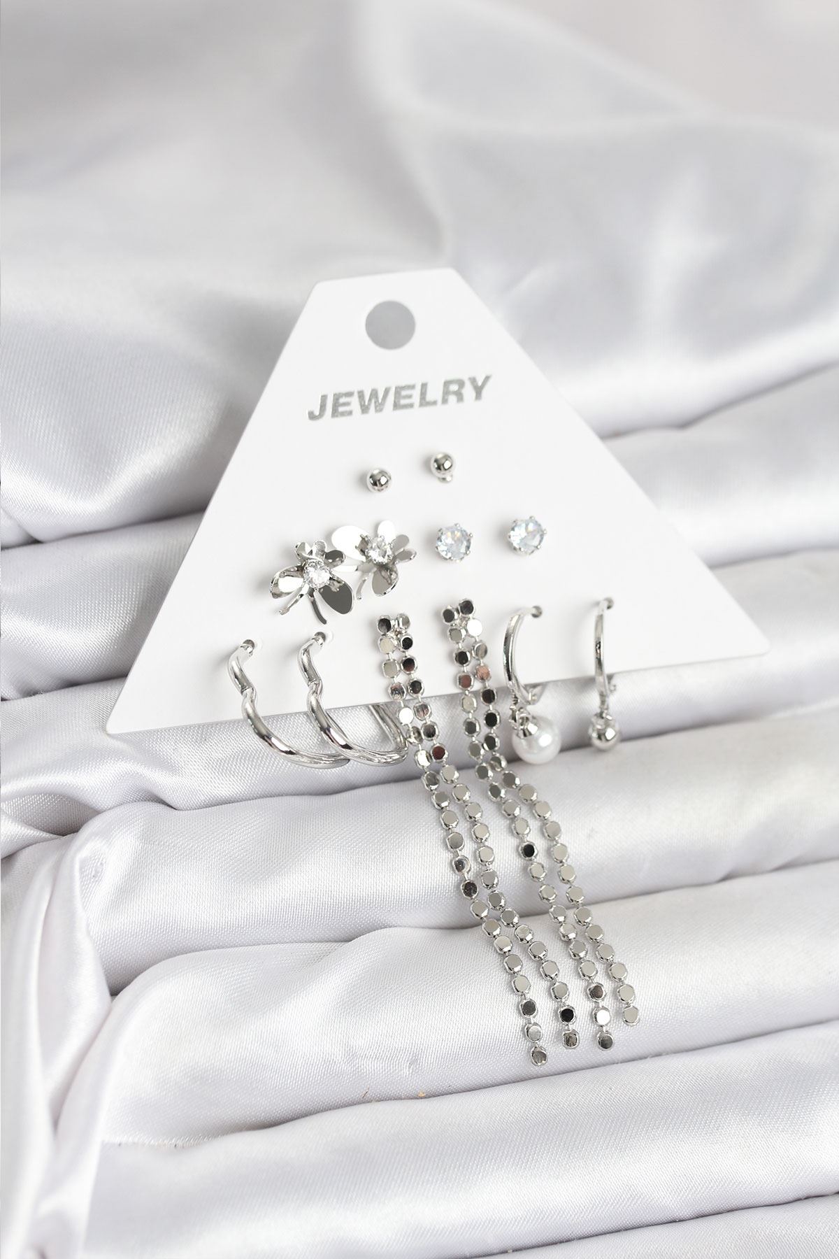 YRTCL Pirinç Gümüş Renk 6 Çift Kadın Küpe