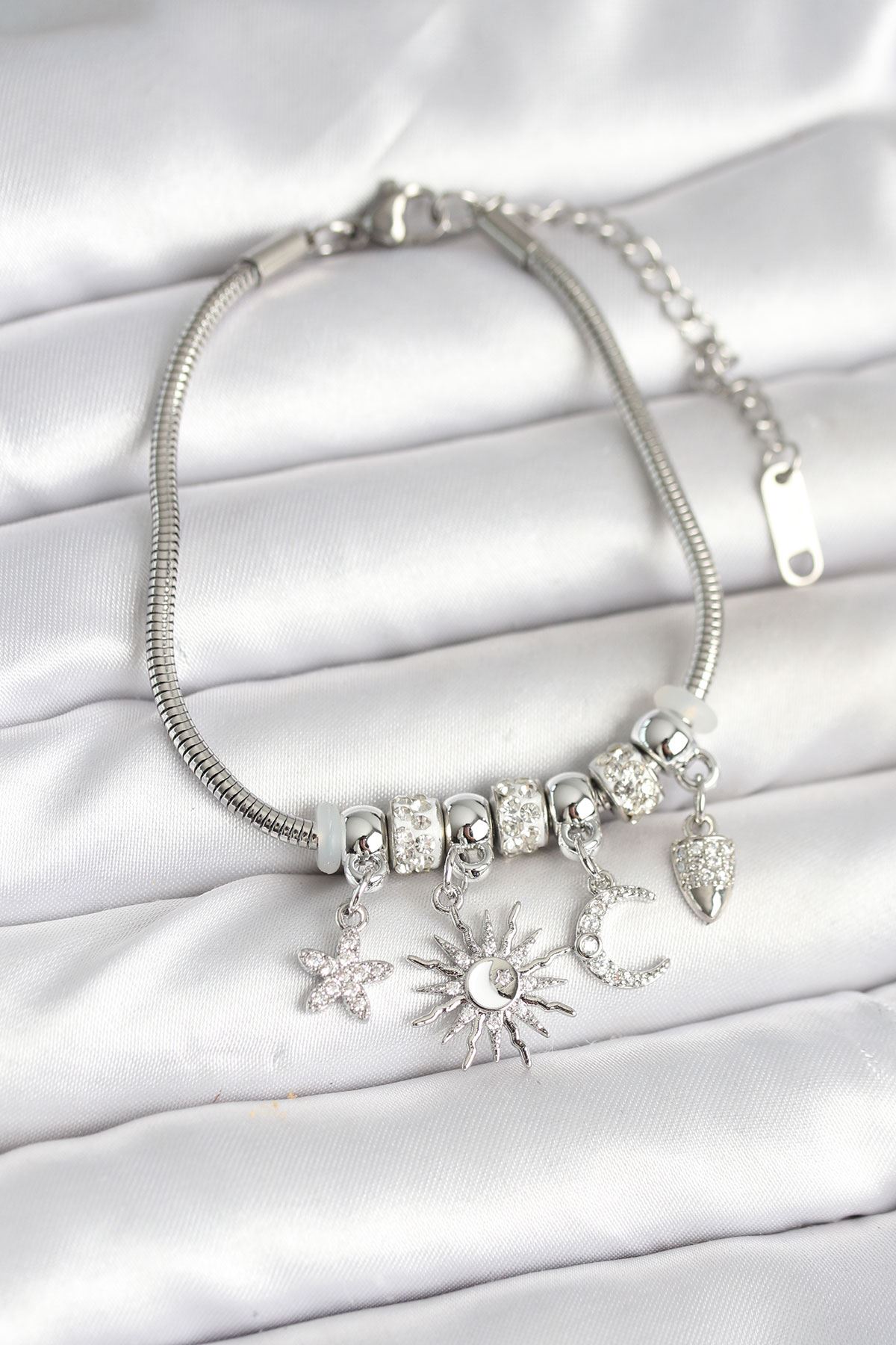 YRTCL Pirinç Gümüş Renk Ay ve Güneş Charmlı Kadın Bileklik