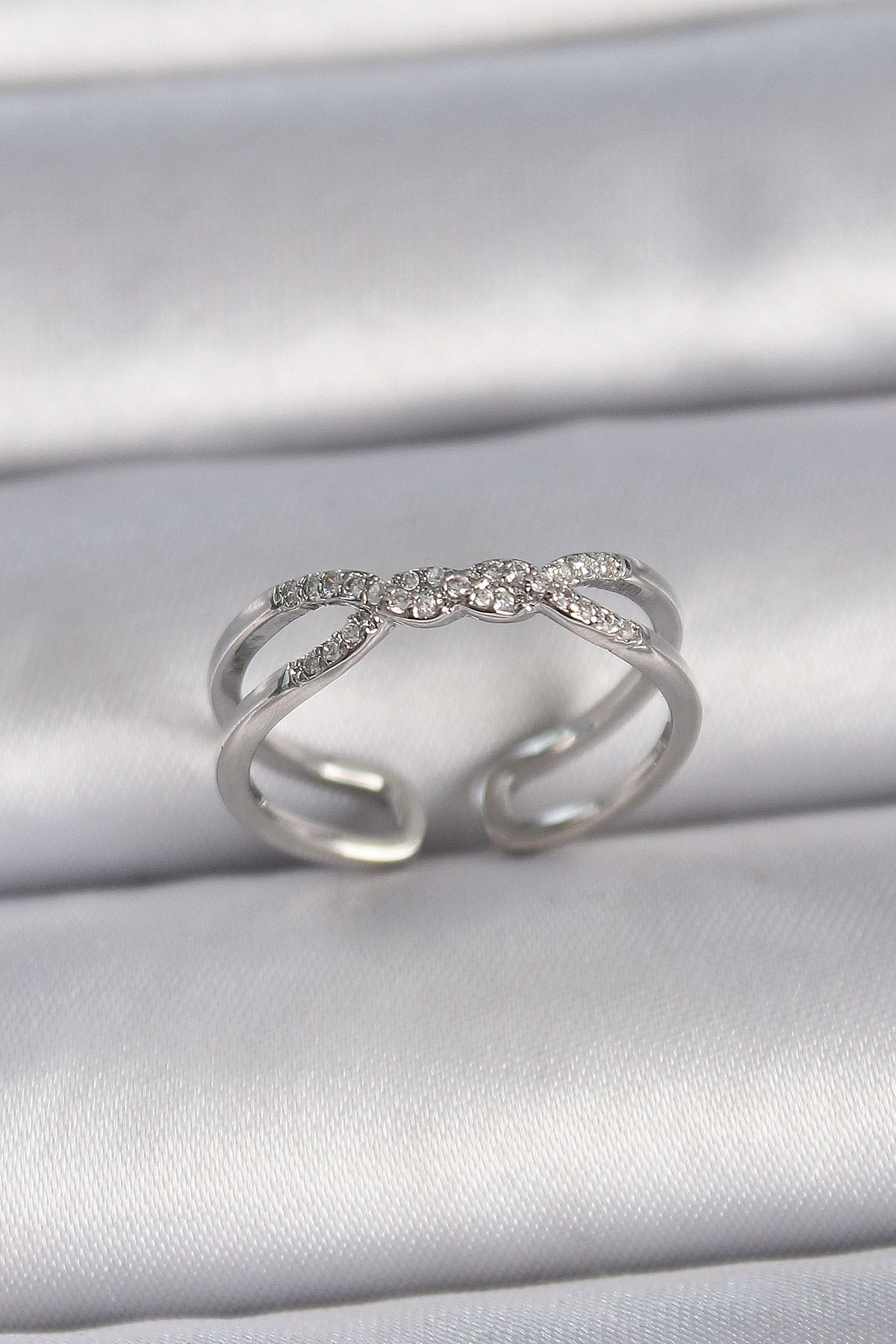 YRTCL Pirinç Gümüş Renk Zirkon Taşlı Ayarlanabilir Yüzük